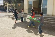 4人の班に分かれ、「面白いもの」を探しに、中庭やグラウンド、