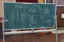 説明書を書きます。冨井さんが黒板に書いた例(左)を参考に、