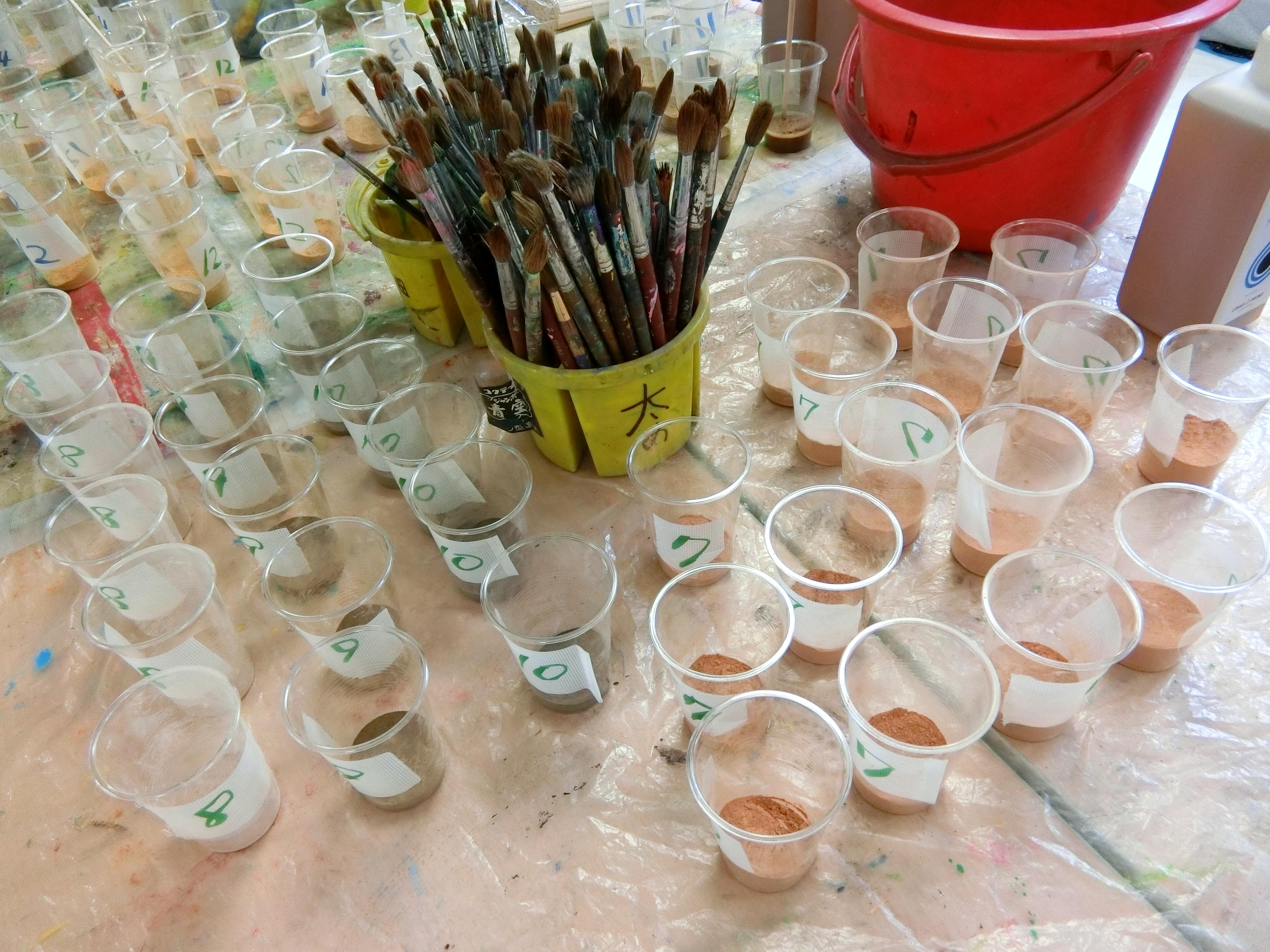 泥絵に使う土は、先生が学校の周りで採取したもののほか、