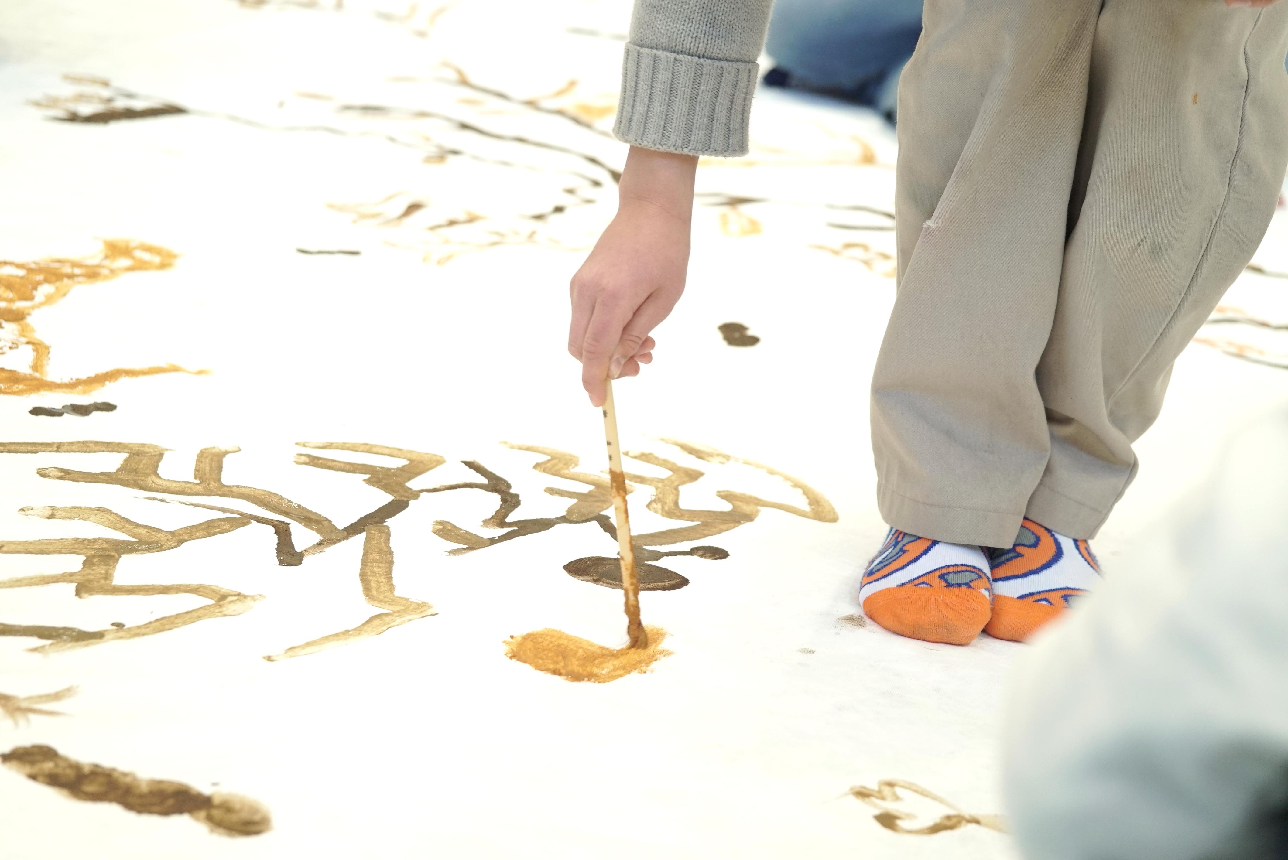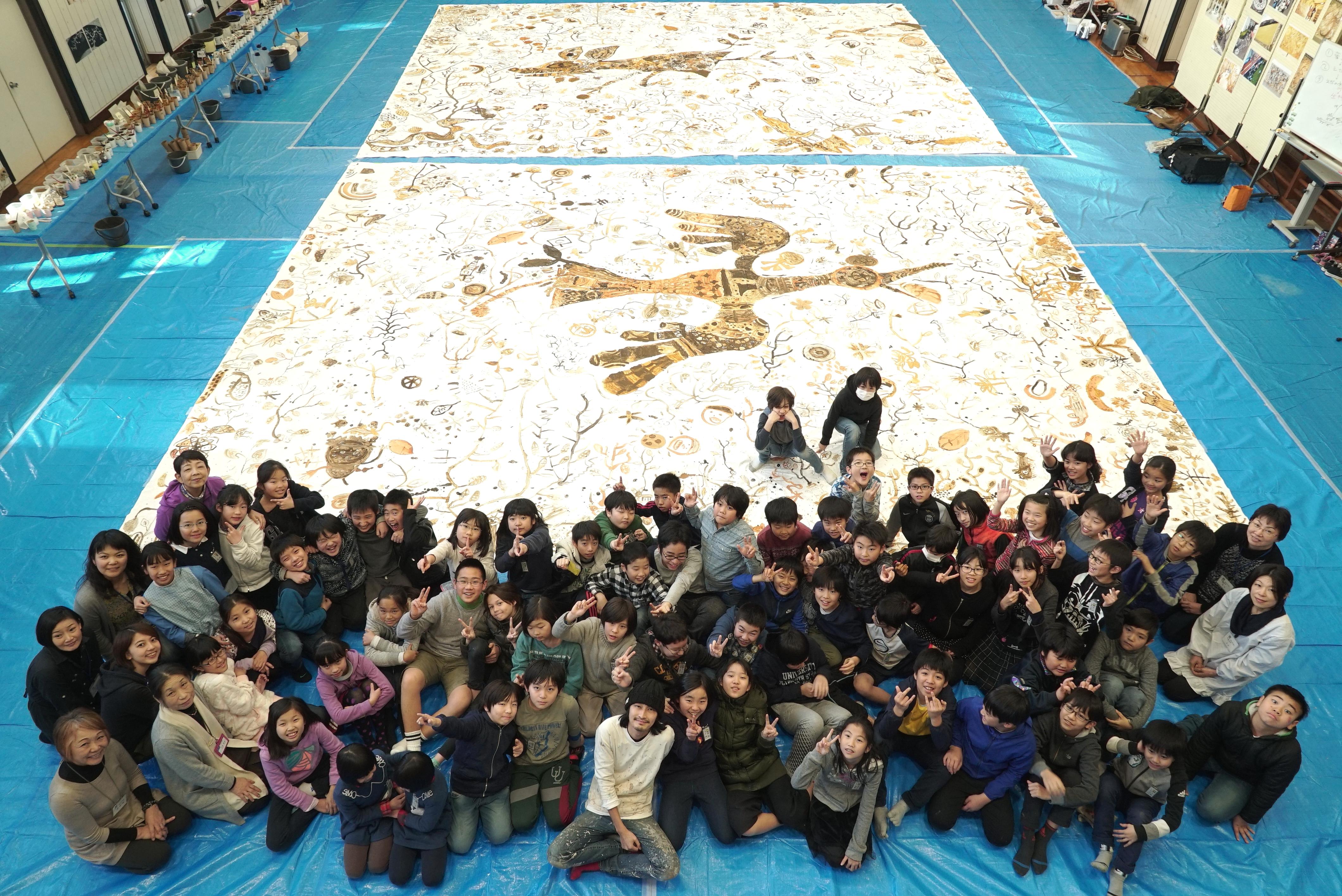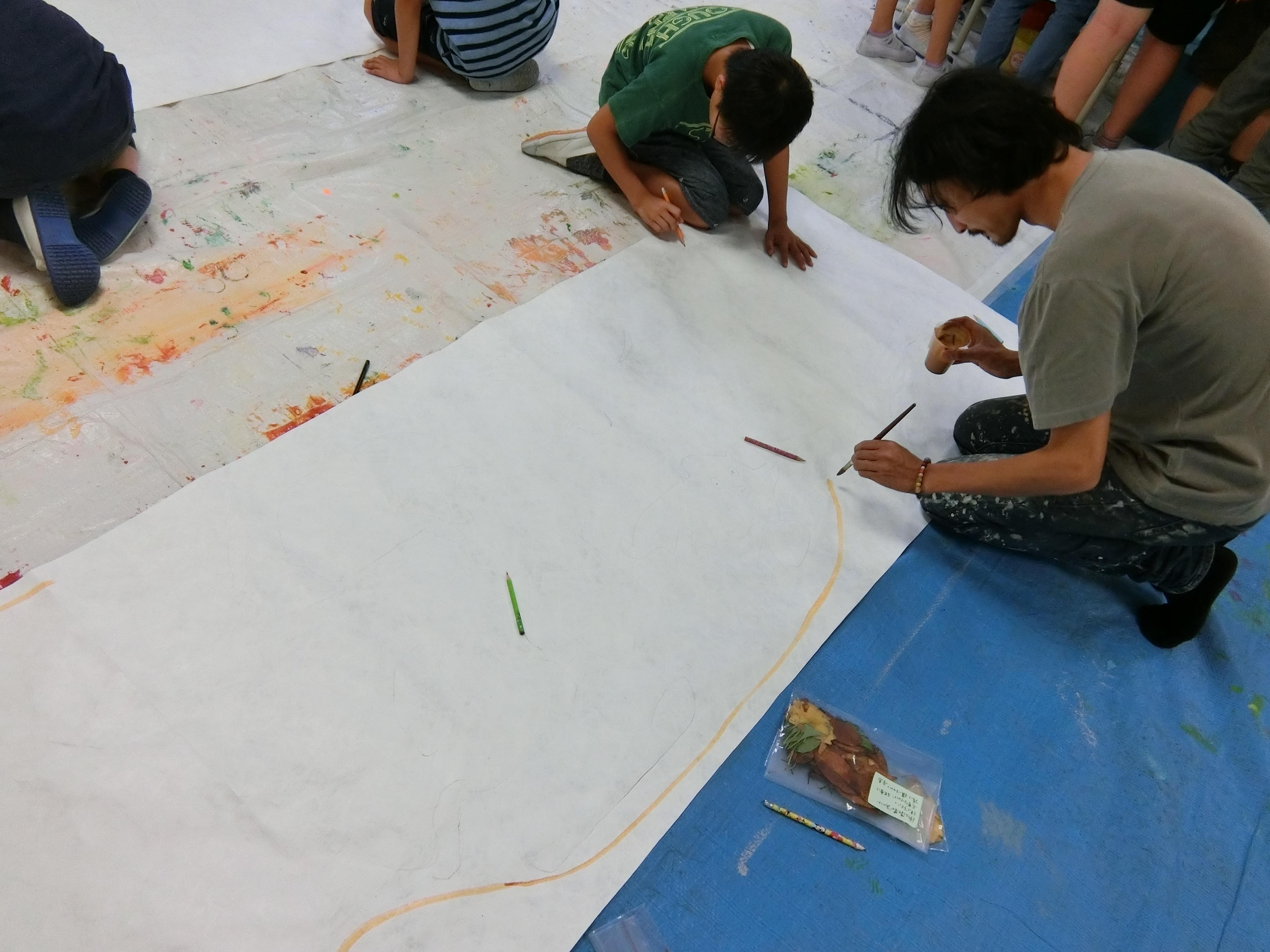 マスキングテープによる"壁画"、そして巨大な模造紙に描かれた"ペン画"でした。