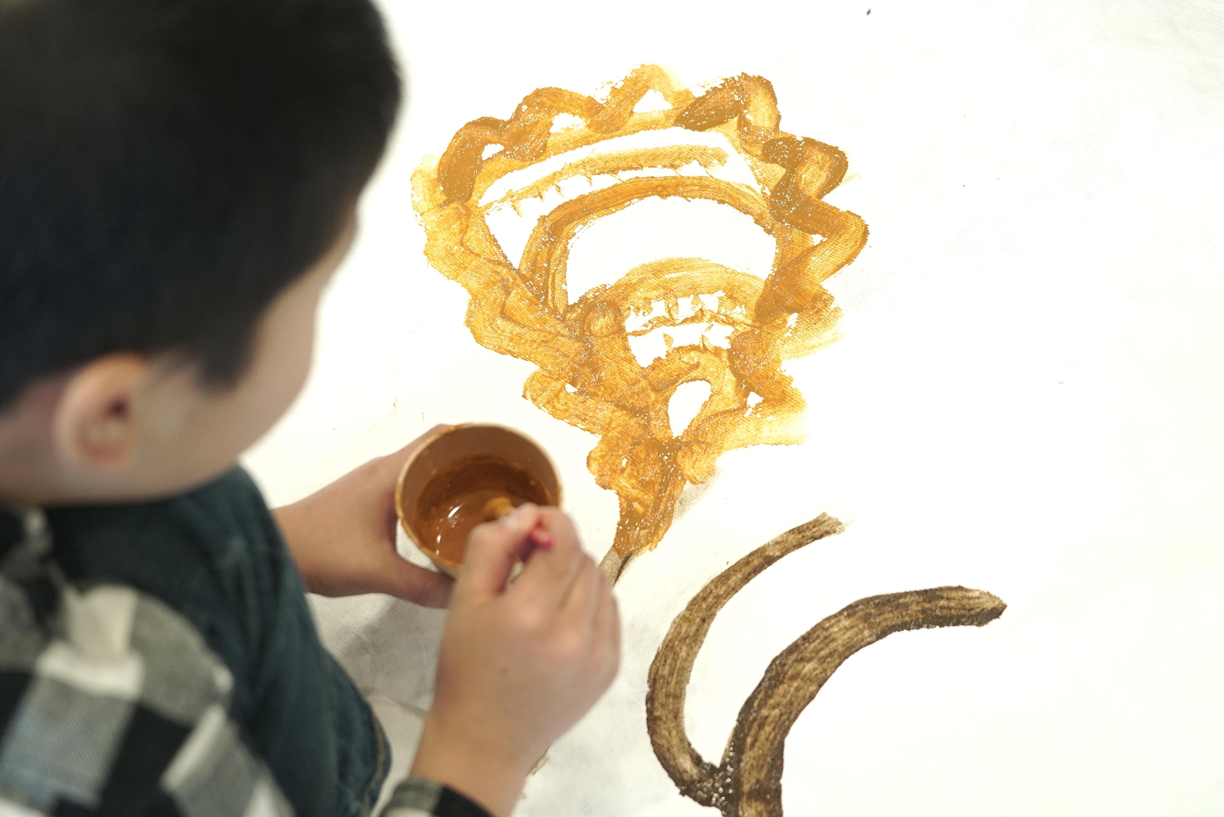 淺井さんが授業で取り組んだのが、学校の周りなどで集めた土で描く"泥絵"、