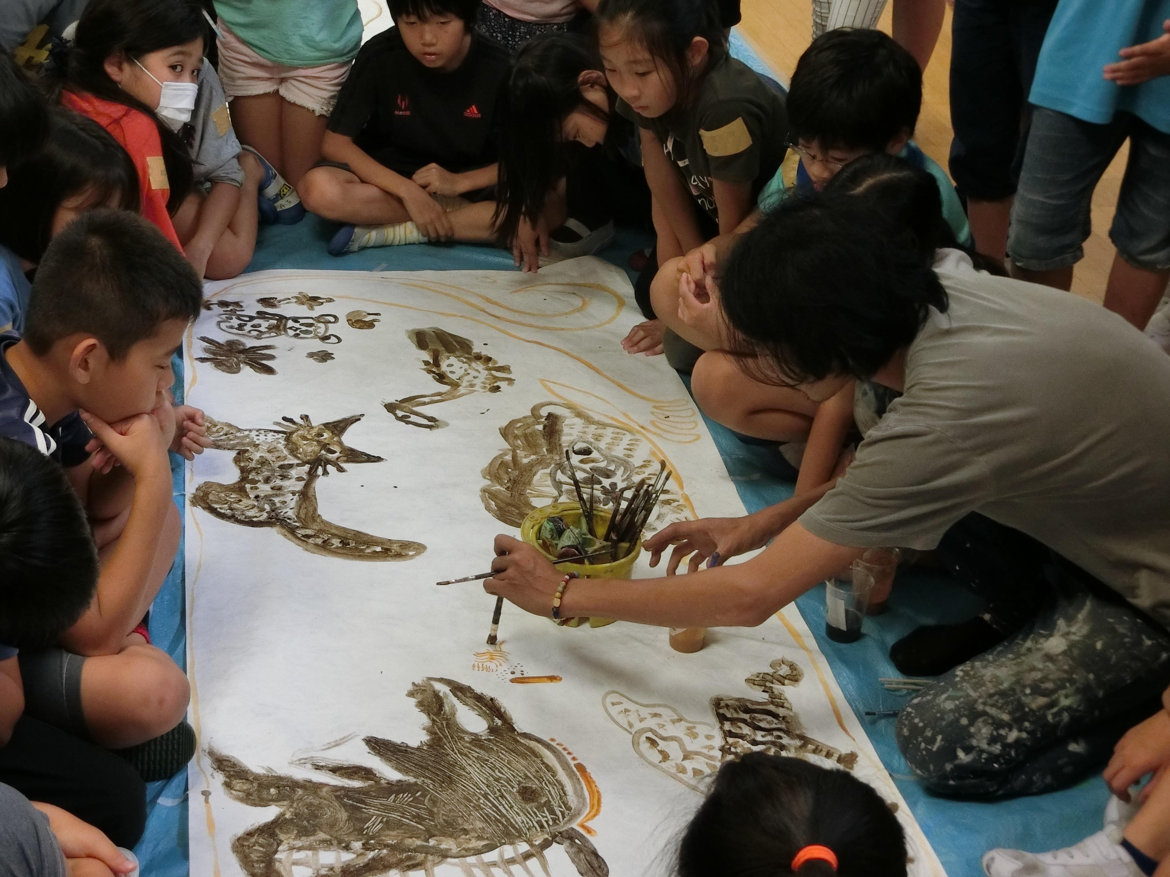 こどもたちの生き物が出来上がると、淺井さんが黄色い土で