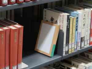 図書館内では、書棚にガムテープ作品が置かれていたり、