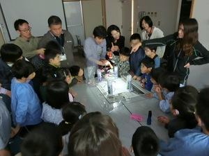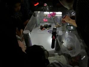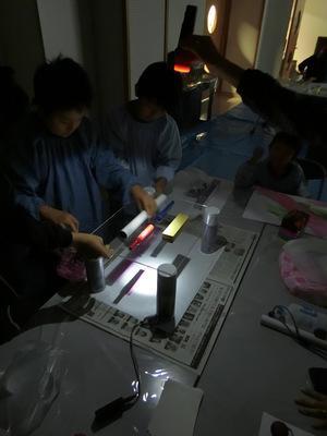 そこに、上や斜めから光を当てて、下に映る影の変化を観察します。