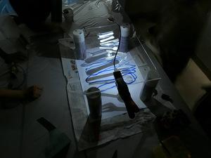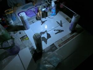光を固定して、その影の形を絵の具で描き採っていきます。