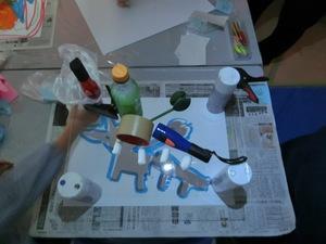 今回の授業は、キットを組み立てて、色付けし、展示をして