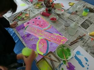 完成した作品を壁面に貼り、最後に鑑賞会を行いました。