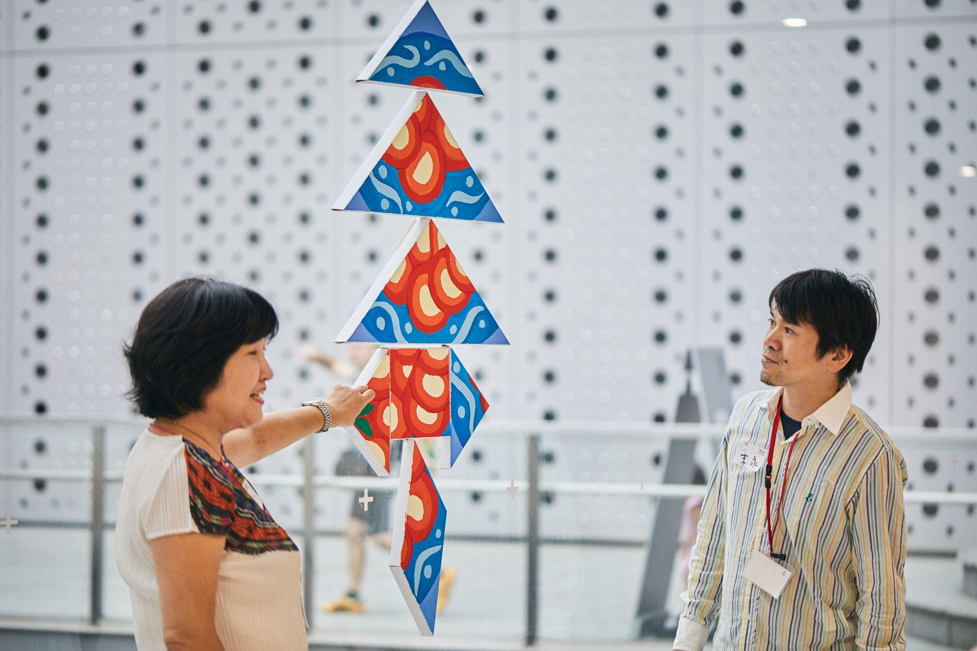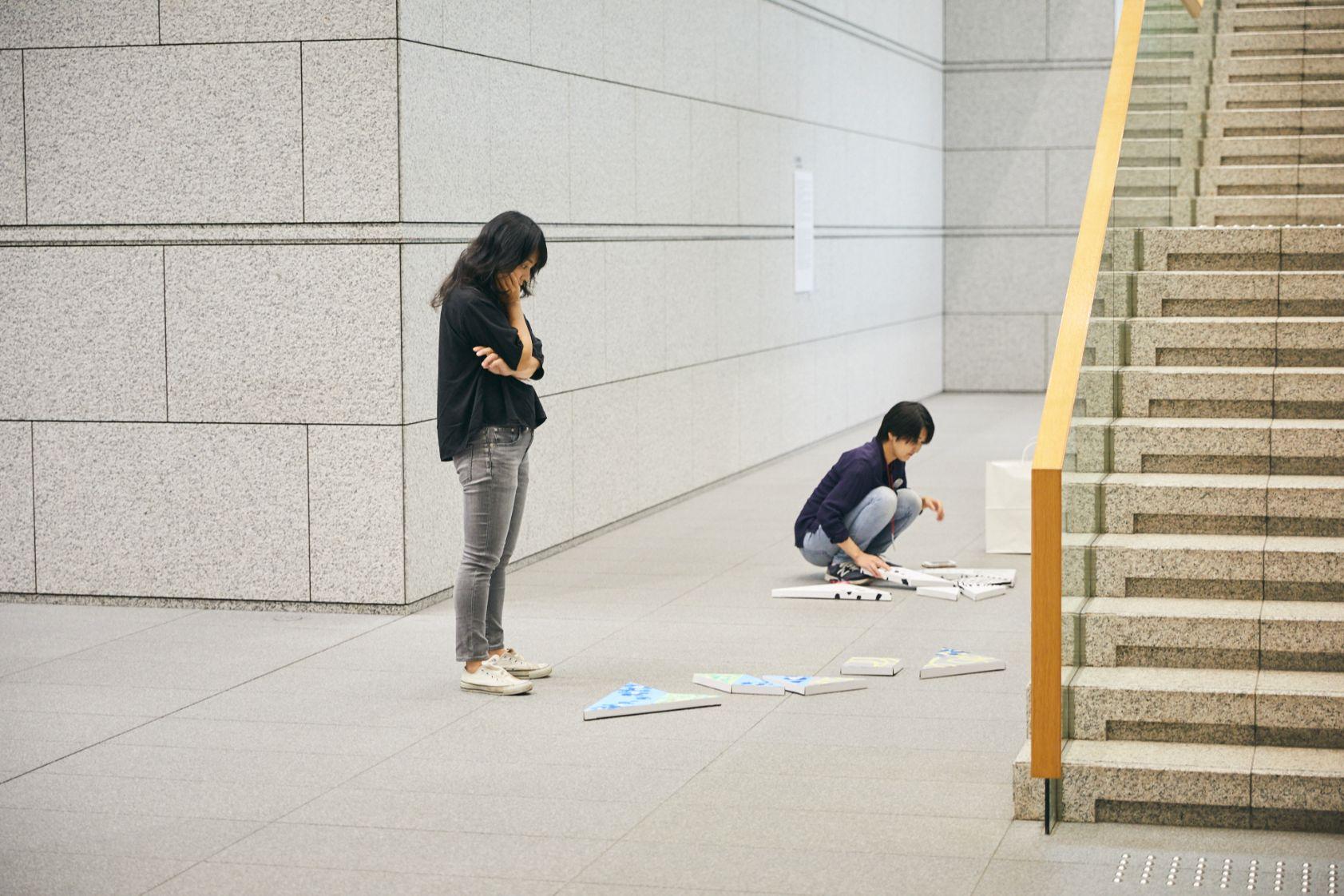 開館中の館内だったので、3歳くらいのお子さんがやってきて、組み替えを一緒に考えてくれる一場面も!実際にその子が考えたパターンが採用されていました。