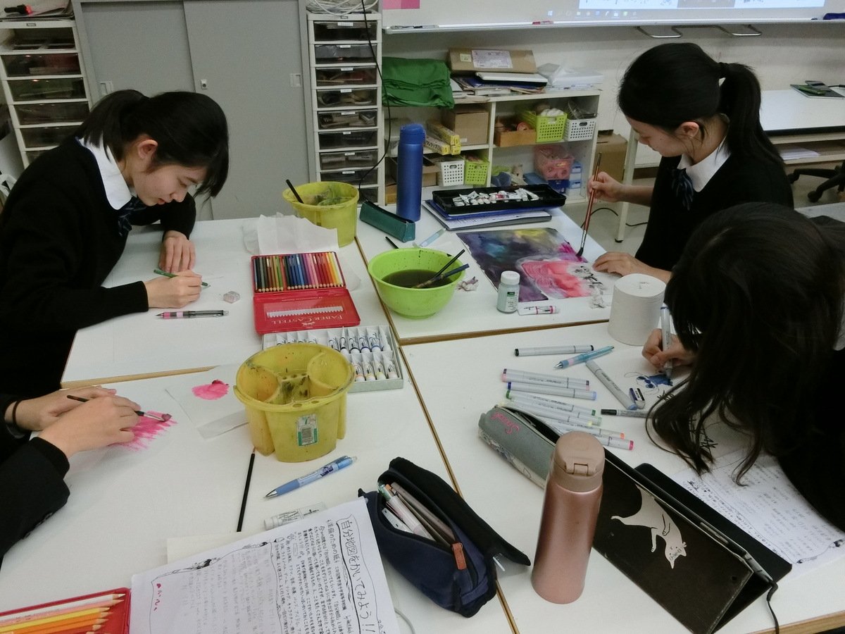 学校訪問1校目は、美術を選択している高校1年生が対象です。