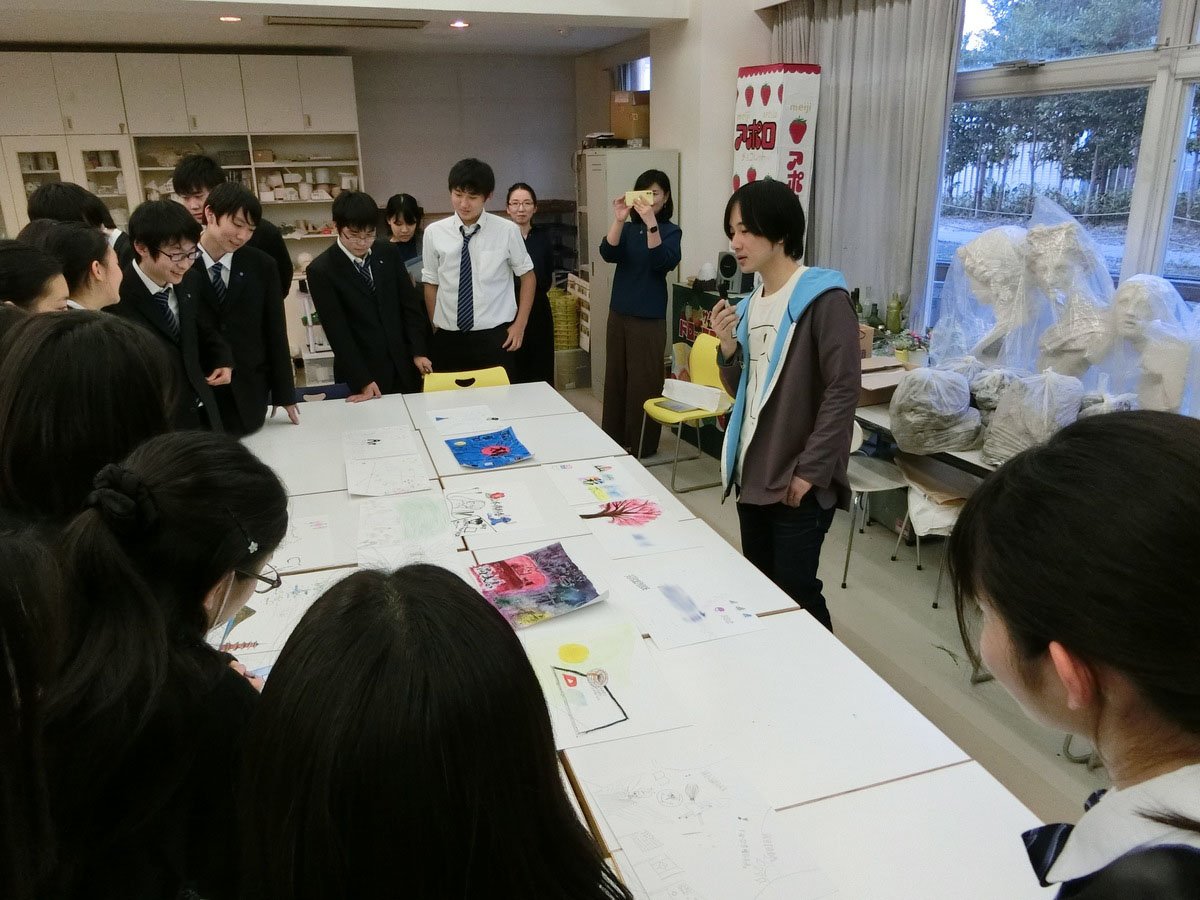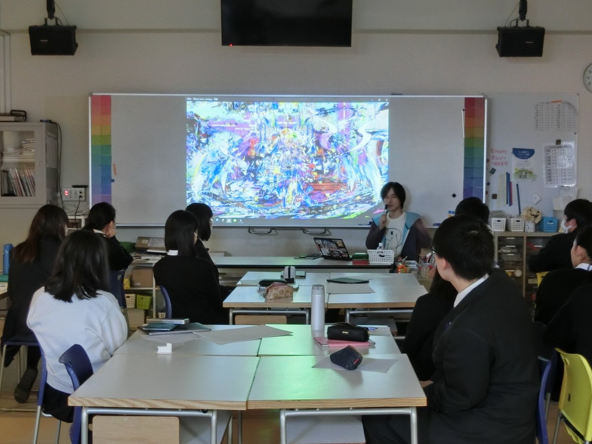学校訪問1校目は、美術を選択している高校1年生が対象です。