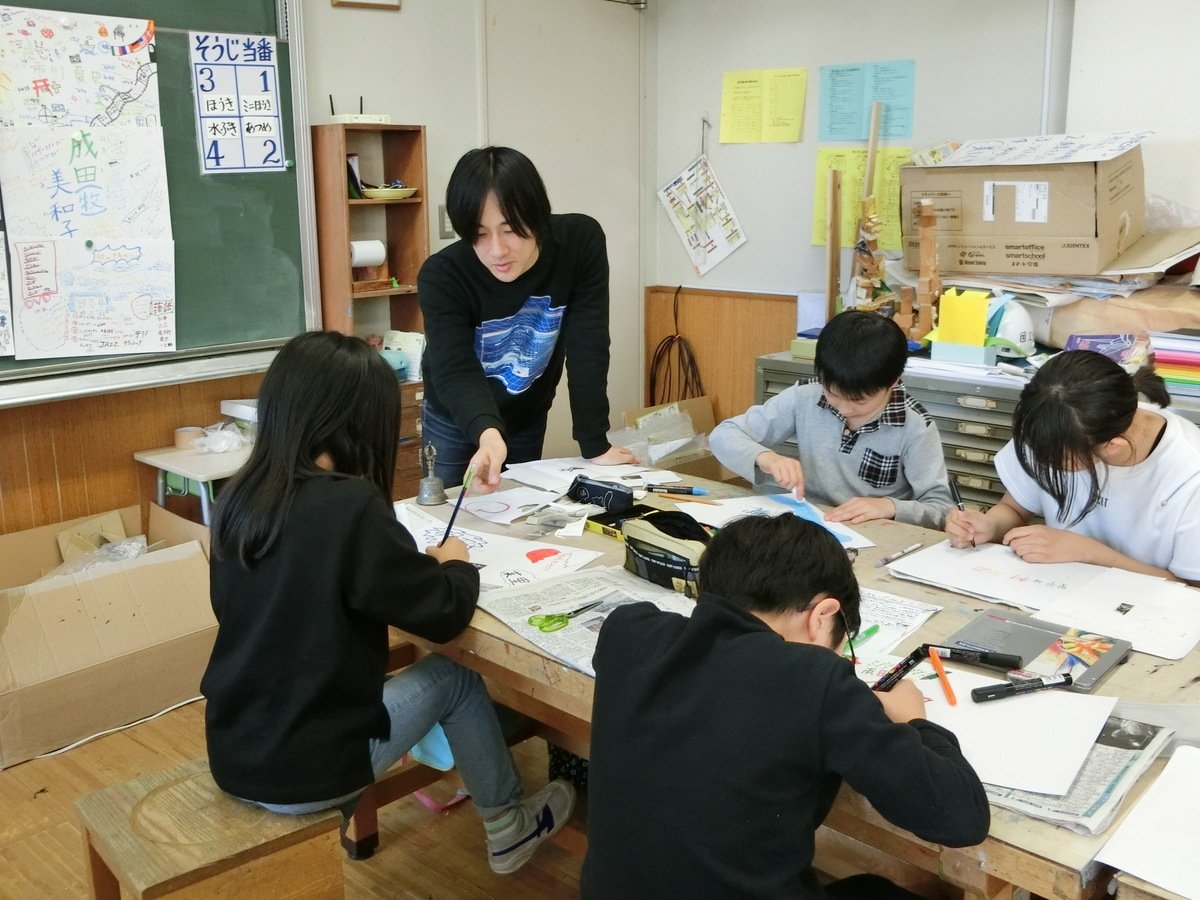 授業後、こどもたちが一人ずつやってきて、梅沢さんに授業の感想を伝えていってくれました。「図工は苦手だけど、楽しかった」「ほめてくれて嬉しかった」「また絶対に来てくださいね!」「来年も来てね!」「これまで芸術だと思っていたことのイメージが変わった。こういう表現もアートになるんだ、と知って楽しかった!」などのコメントが寄せられました。