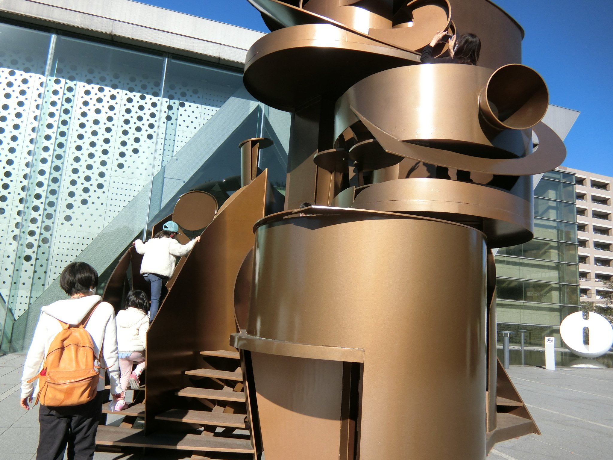 今回、クルーズのテーマに取り上げたのは、当館パークサイドエントランスにそびえたつアンソニー・カロの《発見の塔》。様々な形の鋼の板で作られた《発見の塔》をよく観察した後、本作から着想を得た23種類の紙パーツを組み合わせてオリジナルの塔づくりを行うという内容です。