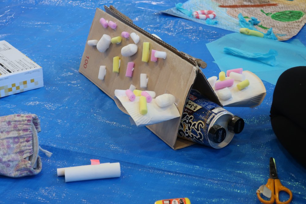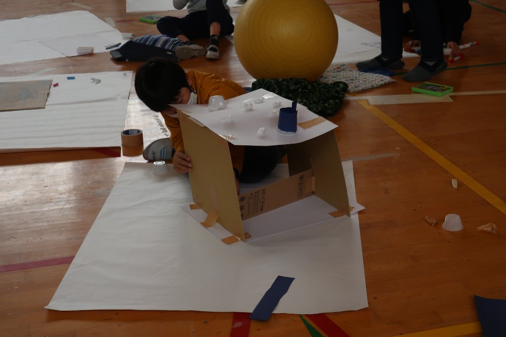 今回の授業では、ミッションに書かれたことをこどもたちが自分なりに考えて、表現している姿が多く見受けられました。様々なミッションによって、想像もしていなかった作品が出来上がっていました。