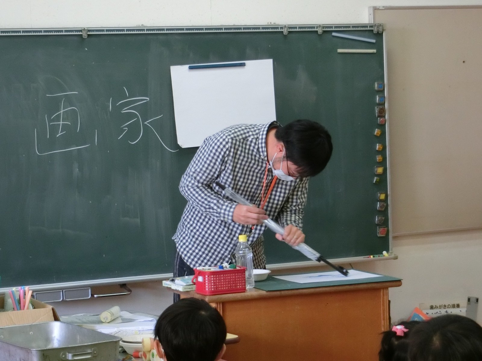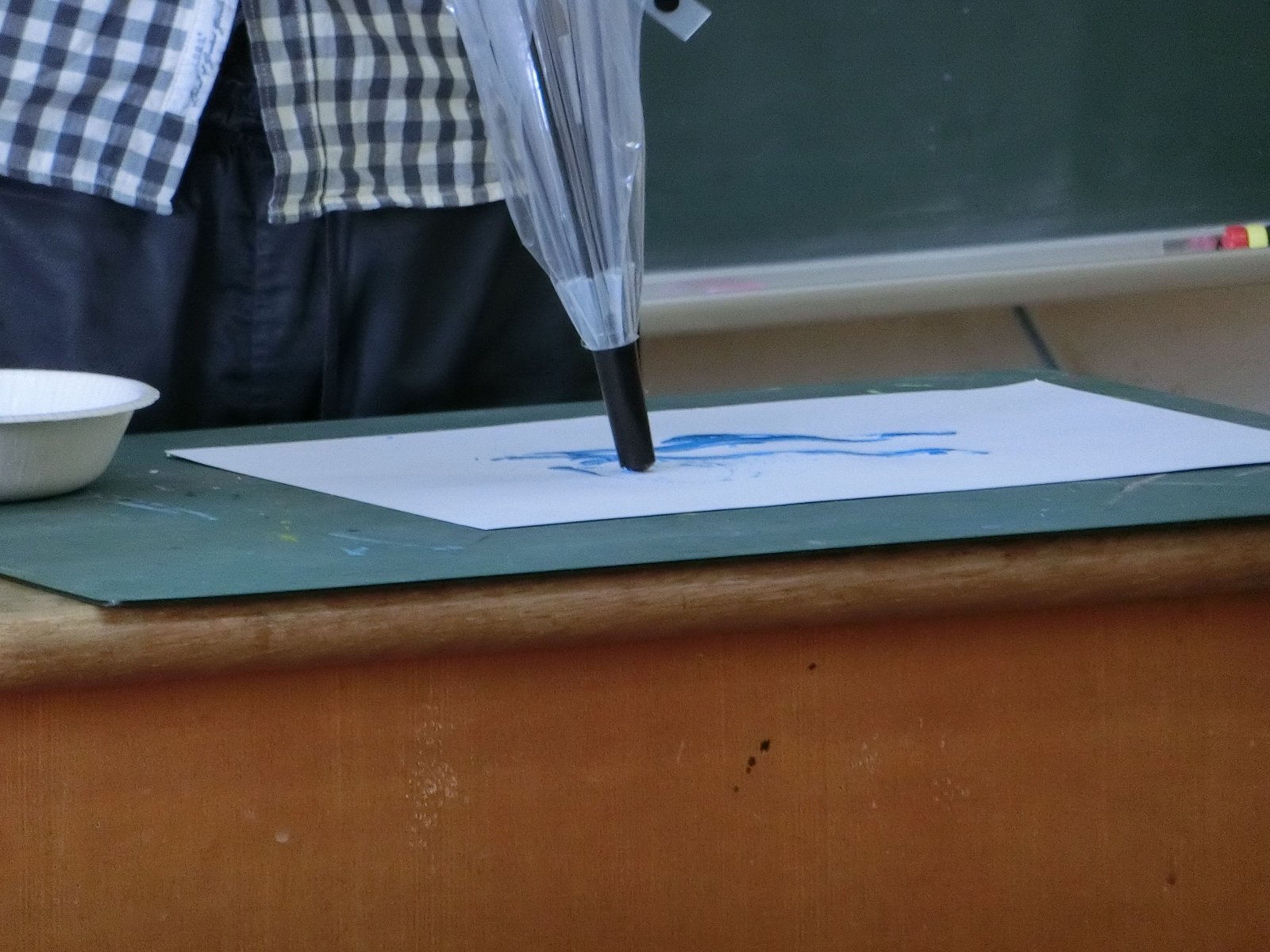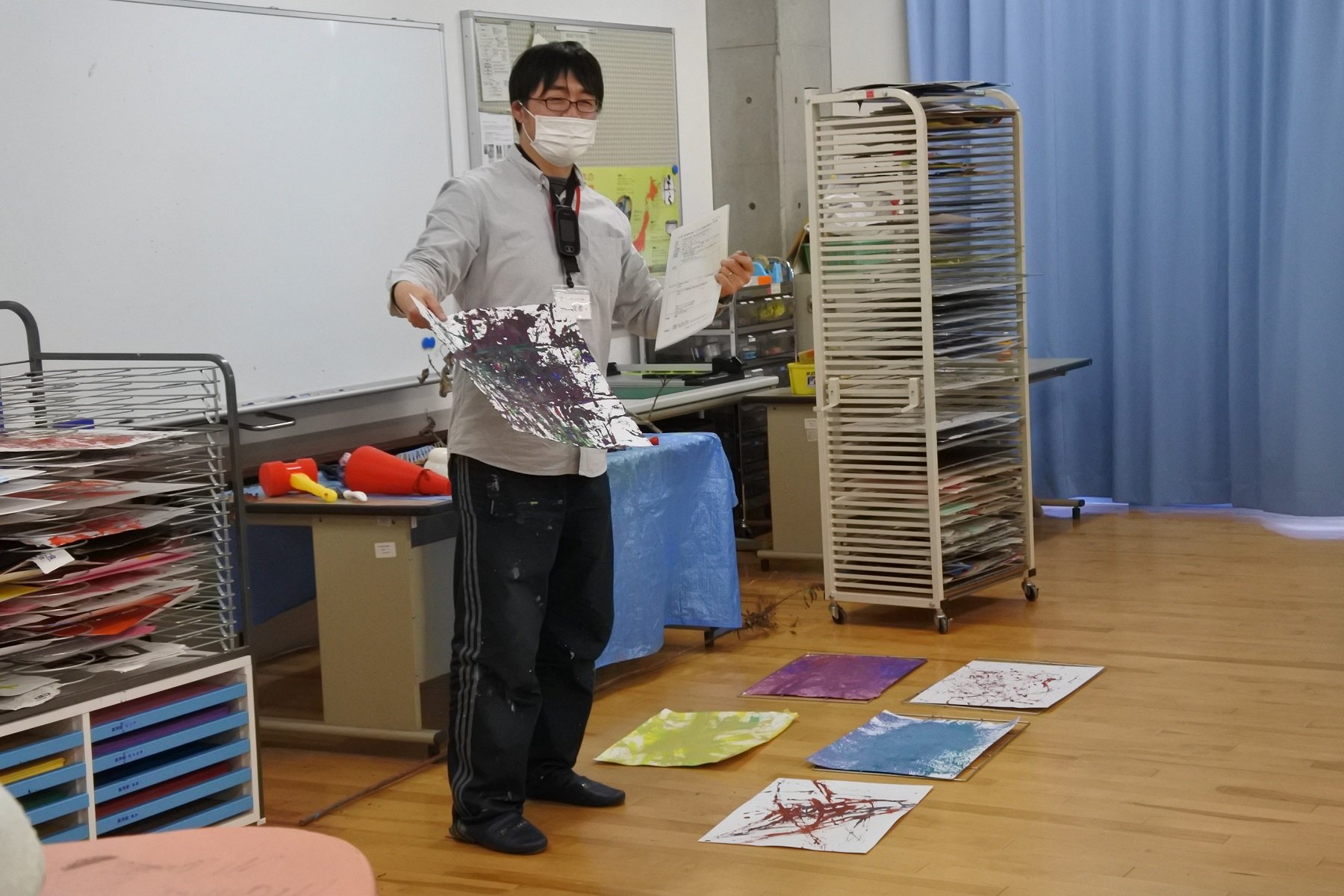 「子どもたちが想像以上に生き生きと活動していた。色の濃淡や水分量、線の違いなど、あんなに様々な表現が出てくるのだと、驚いた。一人一人がそれぞれの個性を表現できていた。」
