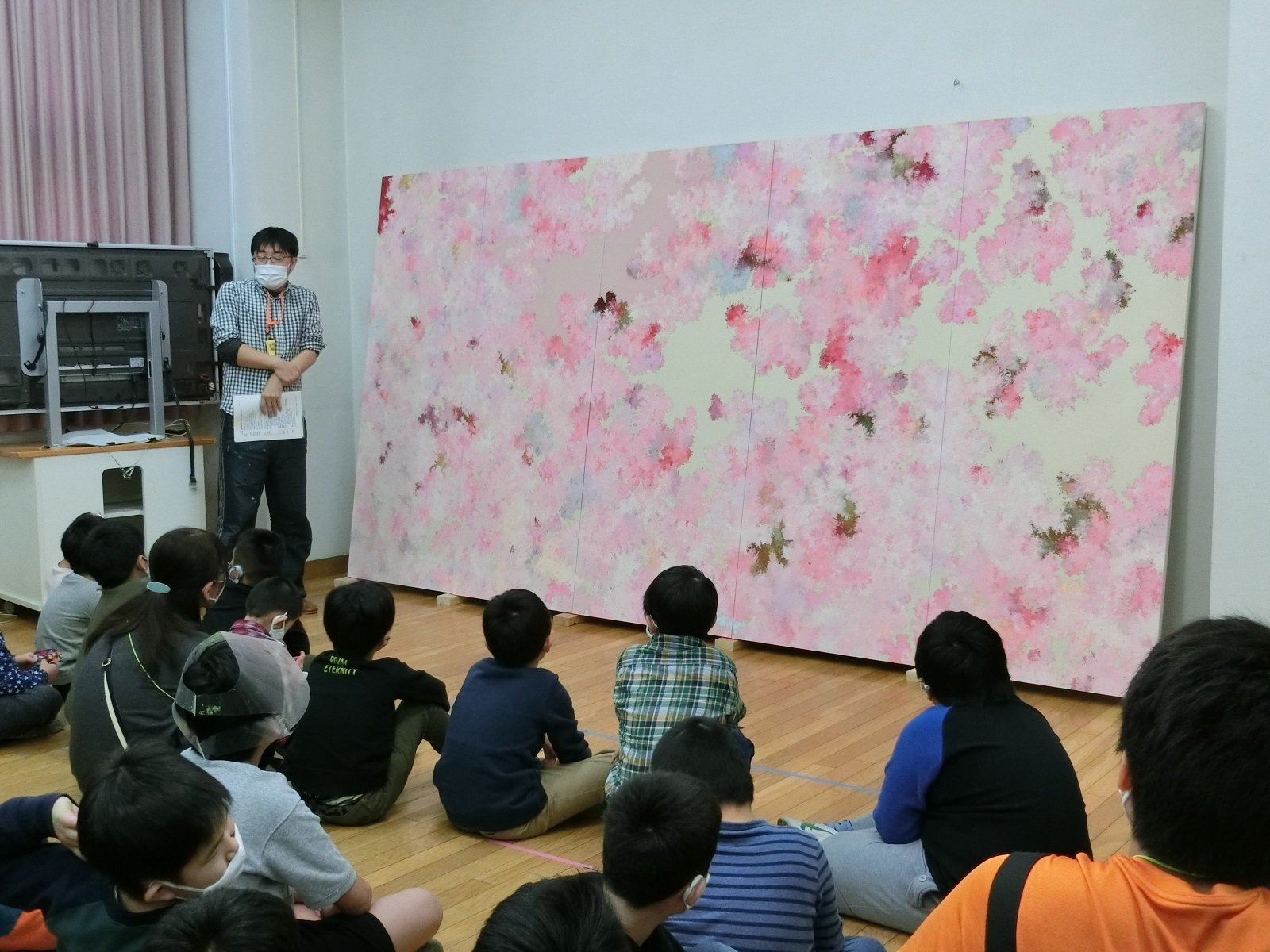内海さんの作品を見た児童からは「これきれい」「桜が揺れてるみたい」「きれいだけどゾワッとする」「さくらんぼみたい」と、想像力豊かで素直な感想が次々と挙がりました。