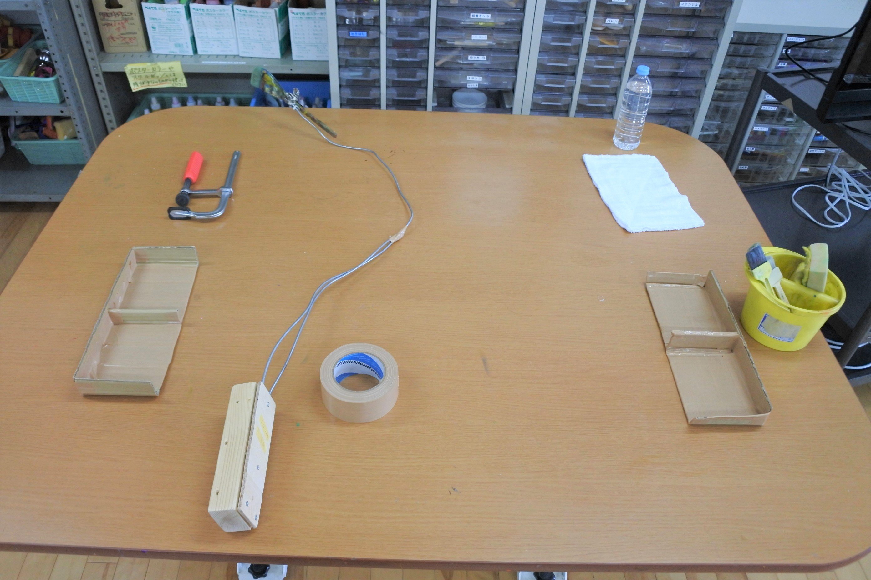 初めのうちは机の上で収まる範囲に留まっていましたが、次第に大きな道具にも取り組む人が現れました。中には、長い木を両手で持ち、まるで書道家のようにダイナミックな表現をしている人もいました。