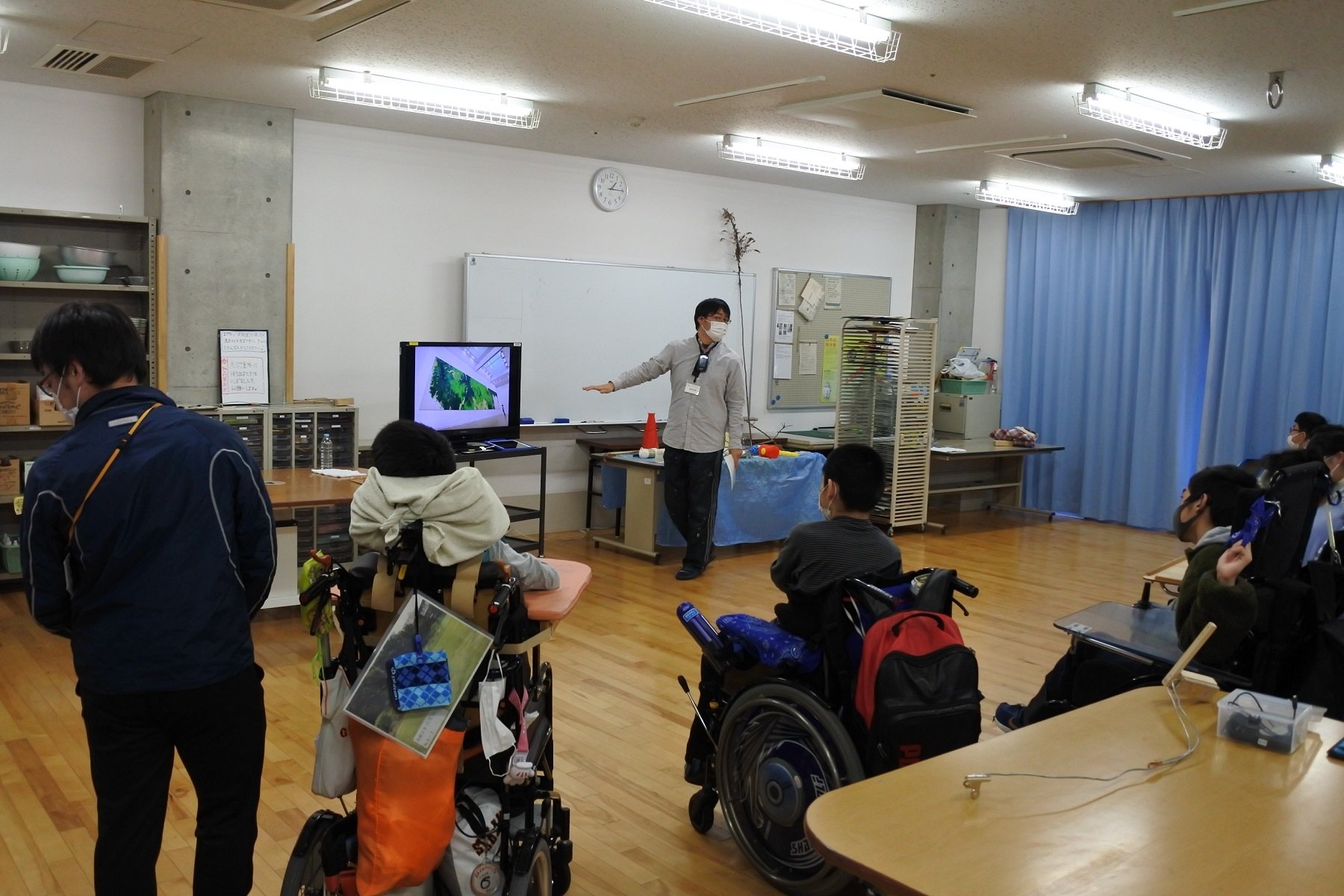 (車椅子の操作性に課題があった生徒については、通常の椅子に座ってアームを持ちながら操作して描くという活動へと変更しました)