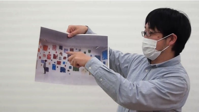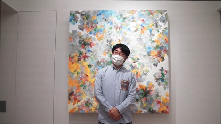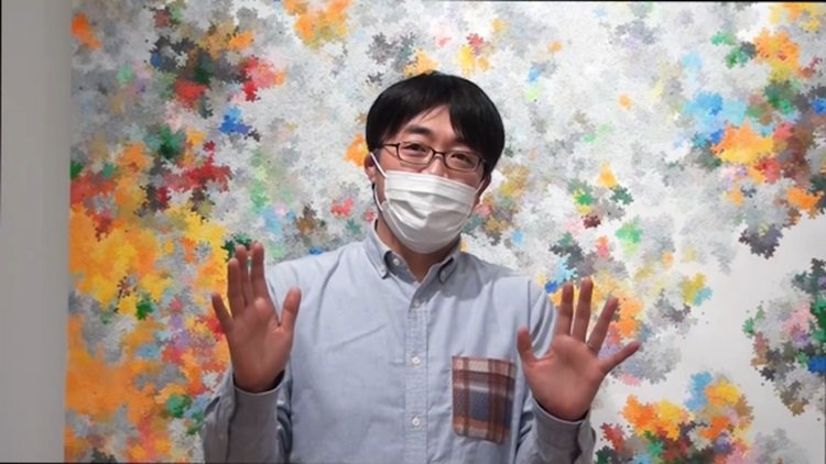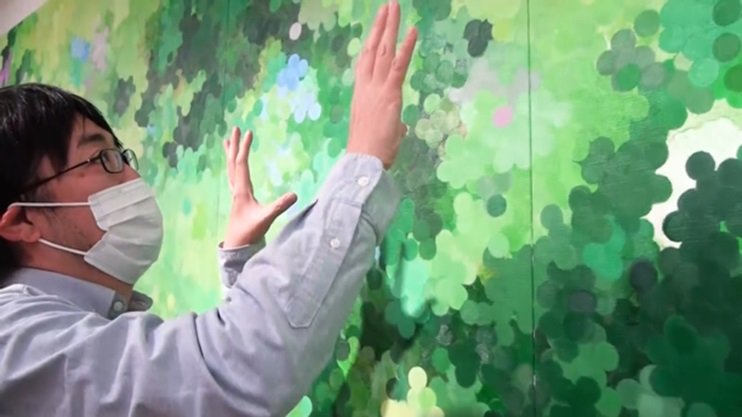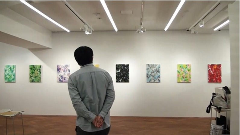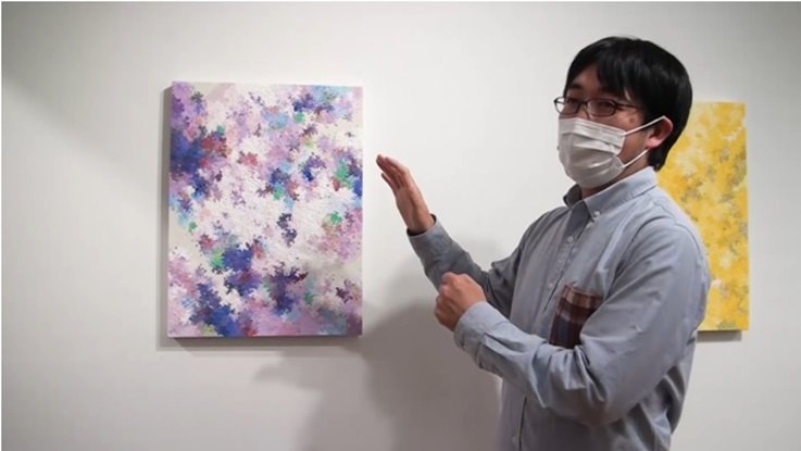 動画は、内海さんの個展が開催されていたMITSUKOSHI CONTEMPORARY GALLERYにて撮影をさせていただきました。「画家について」「制作への思い」「作品へのこだわり」などについてのお話をうかがいながら、ギャラリー内に展示中の作品も余すことなく撮影させていただくことができ、視覚情報も多く含んだ贅沢な内容となりました。視聴する児童の集中力なども考慮し、15分程度に編集したものをDVDに焼いて学校へと送付し、2月26日(金)には授業時間に視聴していただくことができました。動画視聴後には、ご担当の先生も内海さんの個展会場へ足を運ばれたそうで、後日その様子を見聞きした児童と再び盛り上がったとのご報告もいただきました。