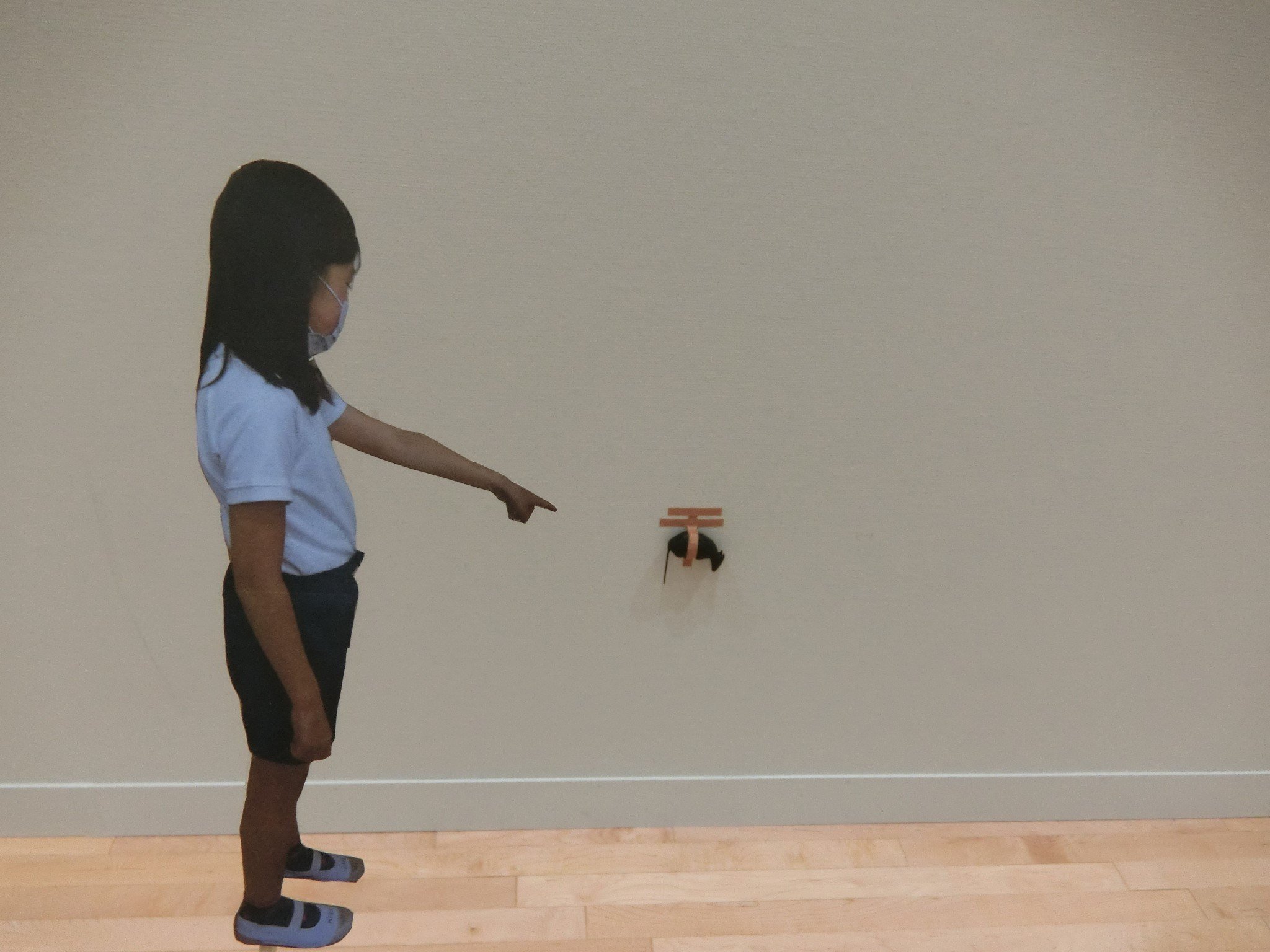 今回は、昨年同様「分身」による作品鑑賞という授業内容は変わっていません。しかし、昨年のアナログな手紙を介した遠隔授業と違って、リアルタイムで学校(こどもたち)と美術館(学芸員)をネットでつなぎ、ホワイトボードの活用や実体感を伴える仕掛けなどを用意することで、離れていても一緒に授業をやっている実感がもてました。だだし、教員のアンケートにもあるように、カメラ越しのため、全てのこどもたちとコミュニケーションをとることは難しく、後方にいて画面に映っていない子までは配慮がいきとどかなかった場面もありました。実際に対面しながらその場で話すのとは空気感も異なるため、リモートではその分互いの心理的な距離を縮める工夫が必要であると感じました。
