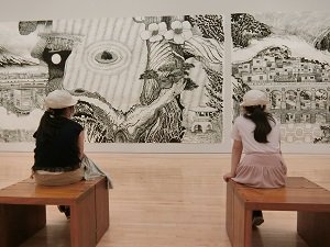 コロナ禍で学校のこどもたちが鑑賞にくる機会は減っていますが、やはりこうしてこどもたちが来てくれて、鑑賞している姿を見られるのは嬉しいものです。こどもたちの「学び」を止めない。美術館もその一端を担えればと思います。(G)