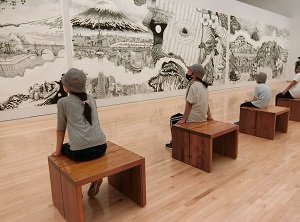 4グループに分かれ、ソーシャルディスタンスに配慮しながらMOTコレクションを鑑賞しました。展示室内での会話を交えた鑑賞が難しいため、事前に講堂で美術館やMOTコレクションに関するレクチャーを行いました。学芸員がクイズを出すと元気よく手をあげて答えてくれました。