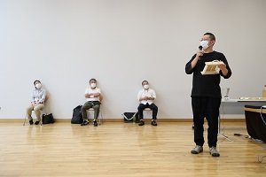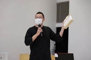 コロナの影響で約1年の延期になり、ようやく実施にこぎつけた2021年秋のワークショップ(実施日:2021年10月2日)。講師をつとめたのは、美術家の土谷享氏。土谷氏は、KOSUGE1-16というアートユニットの代表であり、スポーツをテーマにした作品や、全国各地によばれ街中でのアートプロジェクトなどを展開しています。アートプロジェクトでは、その街の歴史や風習、人物などを綿密にリサーチし形にしていきます。そうしたなかで大切なのが人々との出会い。そのほとんどが美術の世界とは関係のない方々。しかし、そうした異ジャンルとの交流は様々な気付きや視点を与えてくれるものです。