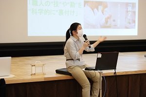 参加者は10名。20代前半から50代後半と幅広く、あまり美術館には来たことがないという方も複数名含まれていました。ゲストのお話もユニークで、元食品開発の玉村さんは「とにかくやってみて、日々記すの繰り返し」、体育教師の中塚さんは「見える化と観察が重要」、金属加工業の吉成さんは「1個目も1万個目も同じ品質に保つのが大変」など、お仕事で大切にされている視点などがレクチャーされました。