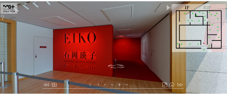 当館のWEBサイトには、先に終了した展覧会「石岡瑛子 血が、汗が、涙がデザインできるか」の展示アーカイブが2022年3月31日までの期間限定で公開されています。そのアーカイブで紹介されているのが、ハイクオリティの360°VR(バーチャルリアリティー)で巡ることのできる展覧会場です。