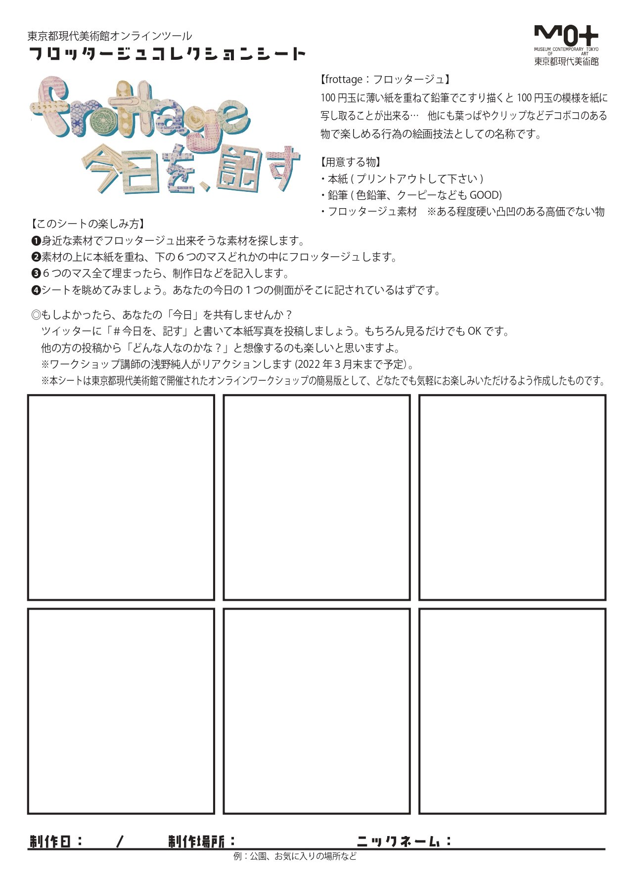 オンラインワークショップ『frottage 今日を、記す』