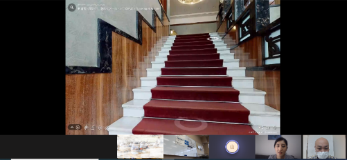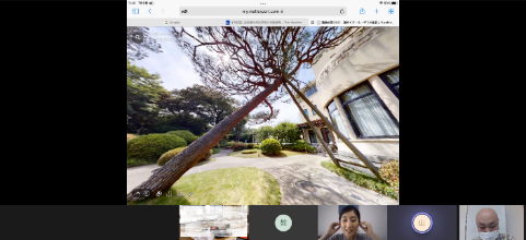 授業者の山本裕史先生との事前打ち合わせ時に、今年もオンラインの利点を活かした授業を開発・実践したいとの意向を受け、昨年度他校とのオンライン授業で当館の石岡瑛子展VRコンテンツを活用した事例を伝えたところ、1人に1台タブレットがいきわたったので、ぜひVRコンテンツを活用した授業を行いたいとリクエストがありました。しかし残念ながら石岡瑛子展VRコンテンツは期間限定で既にサイトが閉じられています。そこで財団施設内でVRコンテンツを探したところ、庭美のWEBサイト内にVR建物紹介があり、これを活用することにしました。庭美の教育普及担当にも打診し庭美にとっても初めてのオンライン授業なので是非にということから協働での連携授業が実現しました。