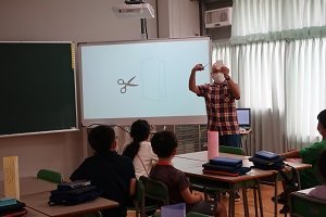 日本語学級との連携授業は初めてでしたが、教員との事前の打ち合わせで日本語習得のための授業ではありますが、言葉で示すよりもなるべく図解やイメージ図を用いて説明する方がよいとのアドバイスを受けたことが非常に役立ちました。「やさしい日本語」を用いることも心掛けましたが、1~6年の全学年を対象とした授業でもあり日本語の習得にも差がみられたことから、イメージ図や実演して示すことの重要性をあらためて実感しました。