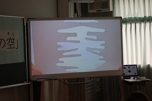 教室に戻り、撮影した空をみんなで鑑賞しました。特に穴の形がユニークであったため、何をイメージした穴かを問いかけながら鑑賞を進めました。「栗」「ハート」「鬼」「蝶」など皆それぞれに具体的なイメージをもって穴を空けていることがわかりました。
