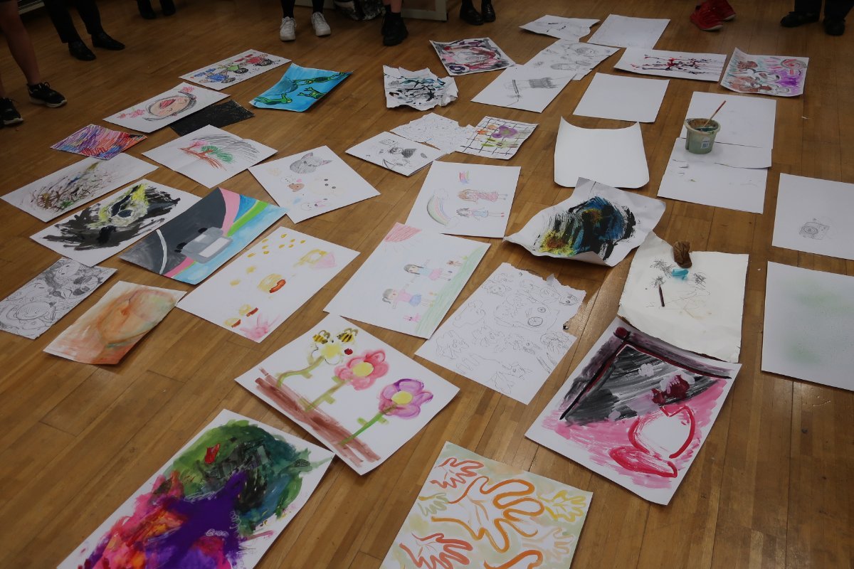 約1時間の制作時間を経て、完成した作品をみんなで鑑賞しました。自分の絵のどこが“下手な絵”だと思ったかを一人ずつ話してもらいました。