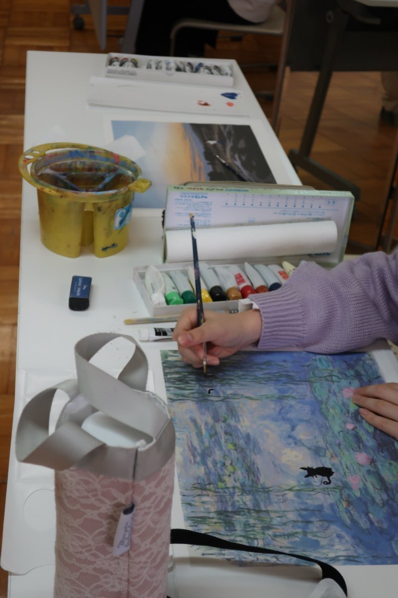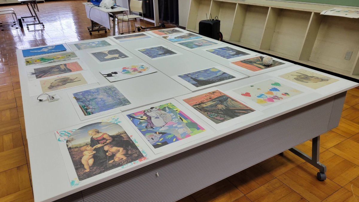 事前に学校にあるアートカードや教科書などの中から表現したい作品を一人ずつ選び、当日に向けてイメージを広げておいてもらいました。