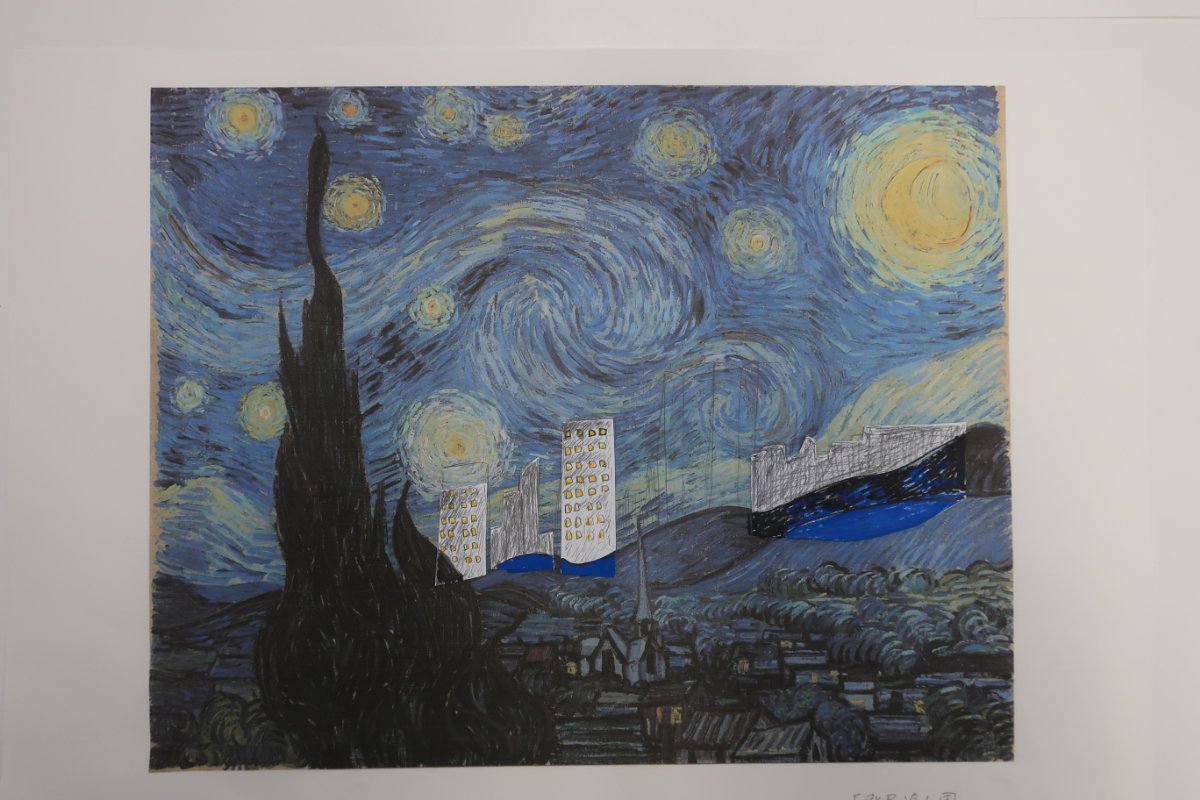 制作開始! 生徒たちによって選ばれた作品をA3サイズ程度に印刷。それぞれ好きな画像を選び、表現していきます。