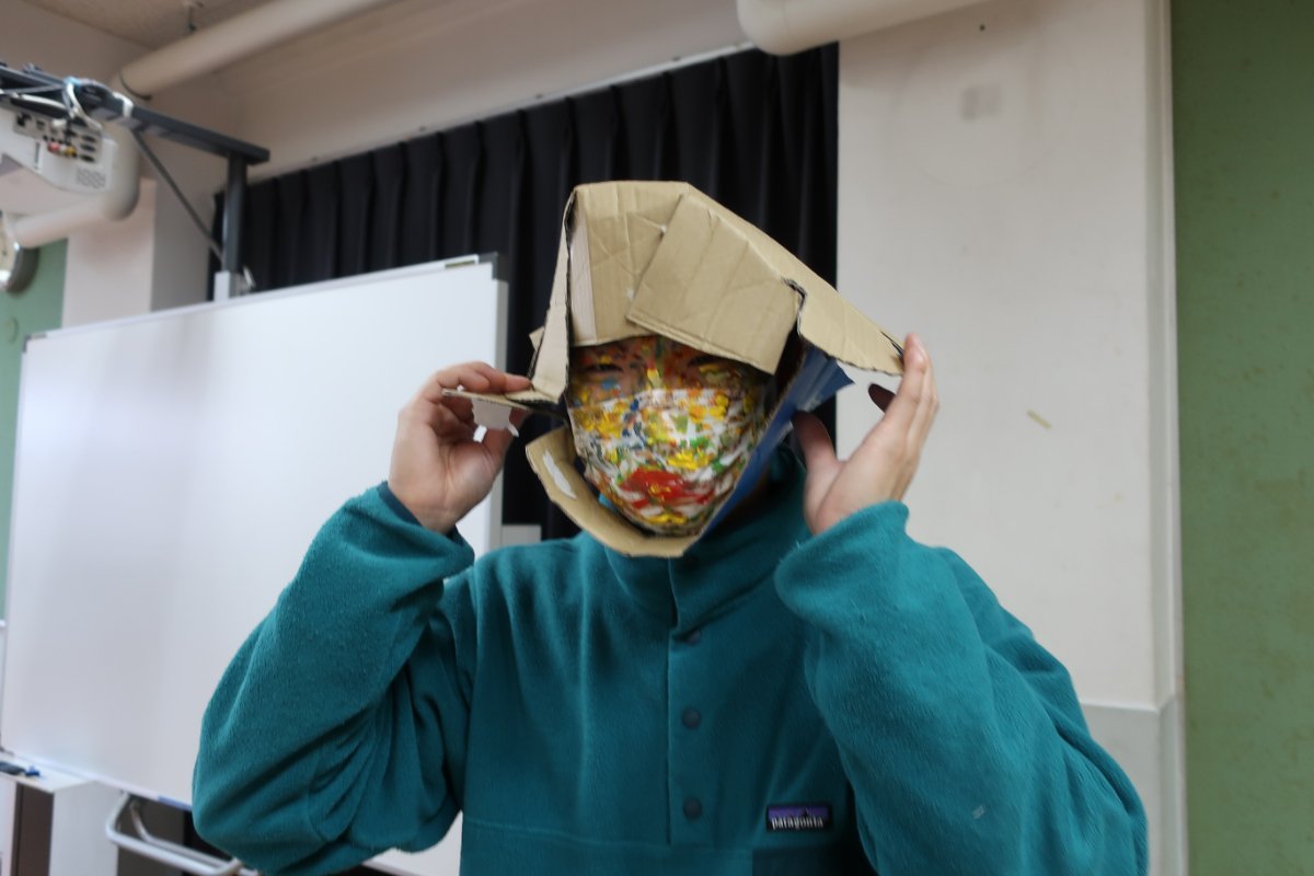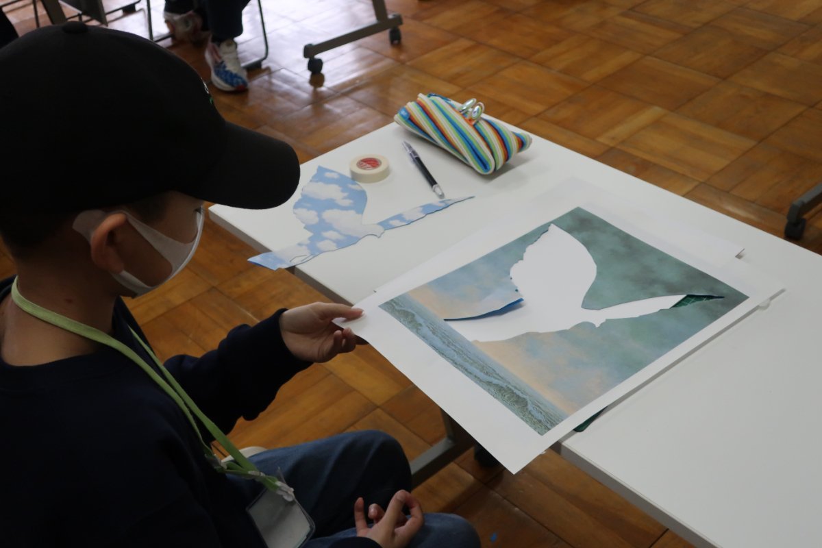 授業に先立ち行った教員との事前打合せでは、普段から生徒一人ひとりの関心に応じて、自由な表現手段で創作に取り組んでいることを伺いました。そのお話を受けて潘さんが考えたのは、「美術の中に自分の居場所をみつける」と題した作品作りです。