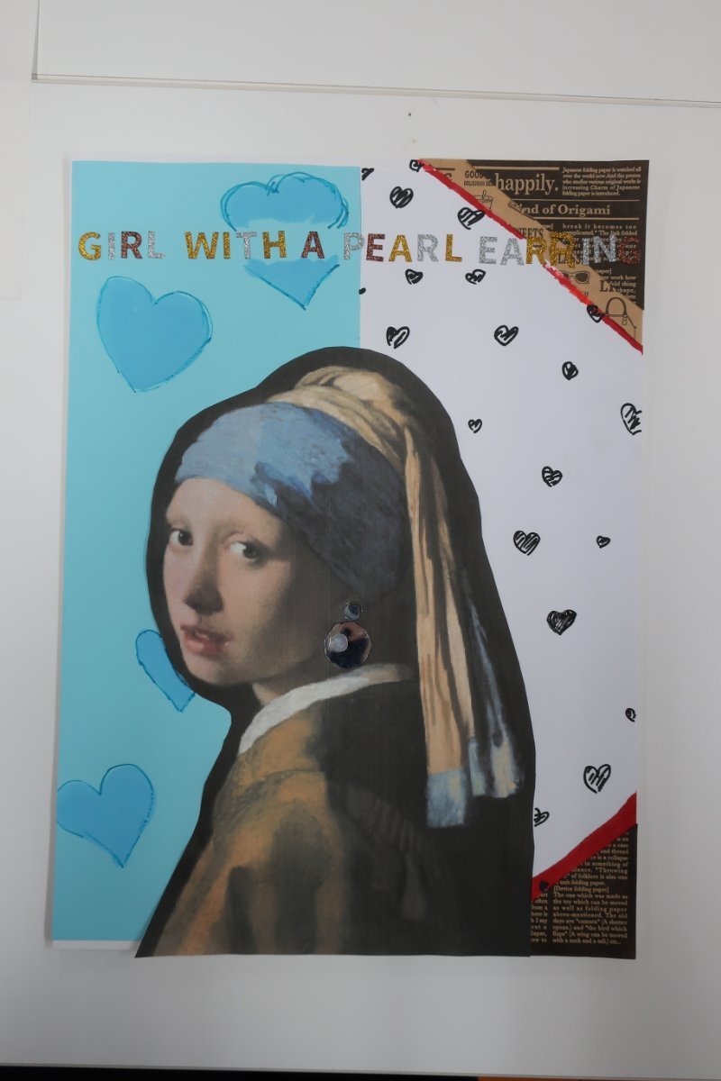 フェルメールの《真珠の耳飾りの少女》が雑誌に載っていることをイメージして作られた作品。