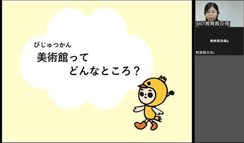3月21日(火祝)、オンラインおやこクルーズ「MOT知りたい美術館!」を実施しました。年小~年長の幼児と保護者のペアを対象とし、当日は4組の皆さんが参加されました。