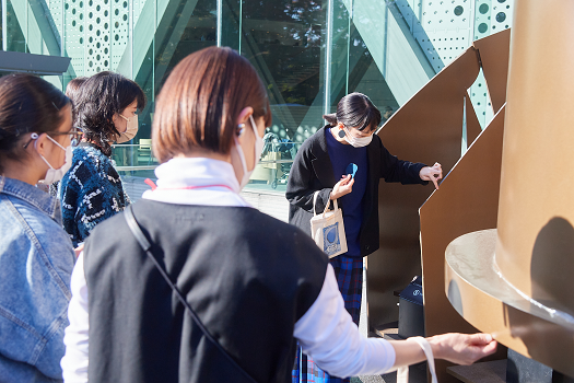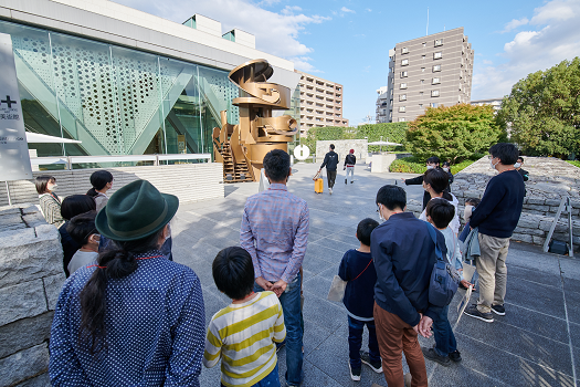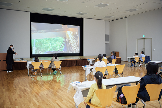 当館スタッフの案内で内部に登って目線を変えながら観察をしたり、勝木さんの作品をそっと近づけて厚みの違いを確かめる姿も。また、親子や参加者同士で話すことで多角的な視点に気付き、鑑賞が一層深まっていく様子も見受けられました。