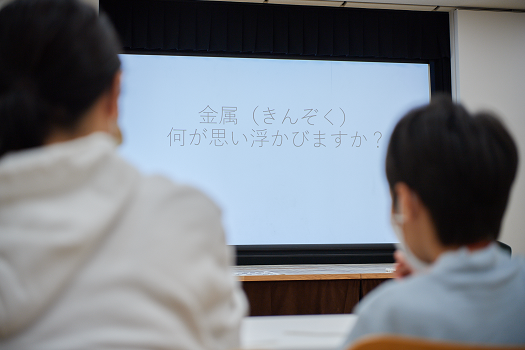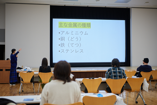 続いて、勝木さんから「金属、何が思い浮かびますか?」との問いかけが。参加者の皆さんは身近な金属を思い浮かべて紙に書き出し、金属でできたものや物質そのものの感触など、様々に考えを巡らせていきます。