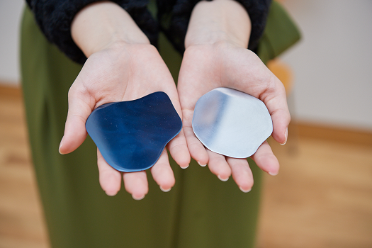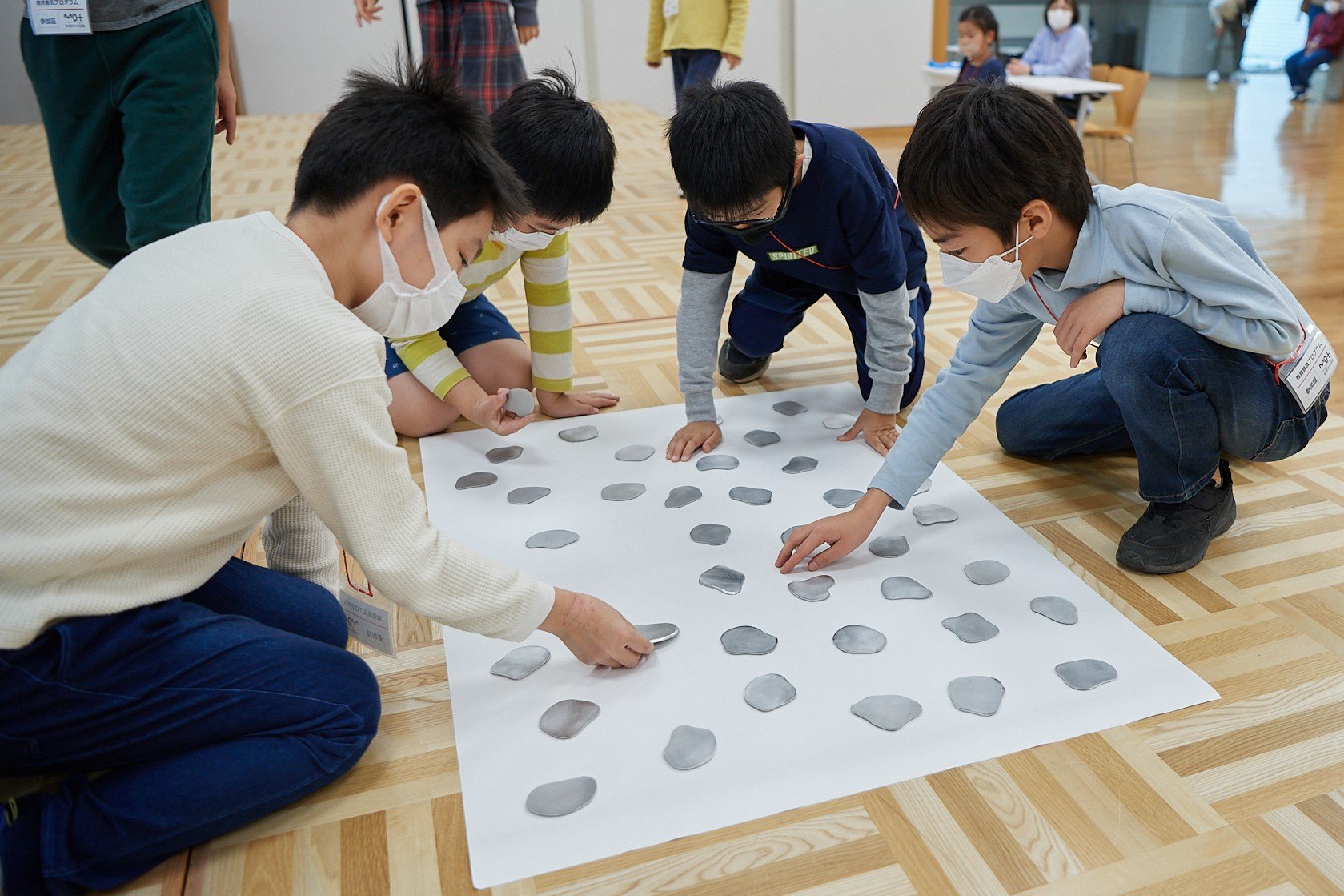 そっと手にのせて、しばらく重みや質感を確かめてみます。鏡のような表面に、ひんやりとした温度感。こどもの手にも乗るほど小ぶりなサイズでありながら、しっかりとした重みを感じる物質感に、皆さんの心は一瞬にして奪われているようでした。