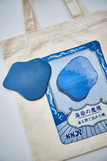 金属の種類(アルミニウム、銅、鉄、ステンレス)と特徴の説明があった後、参加者の机に配布してあったミニバッグの中を見るよう勝木さんからの指示がありました。バッグの中を覗いてみると、そこにはキラキラと光る小さな青いものが!実は、この企画のために勝木さんが制作してくださった鉄の作品が入っていたのです。