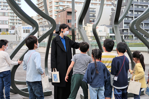 最後に勝木さんから、「デジタル化している時代の中では実感のある体験が減ってきていると思うけれど、今日は、私の作品と美術館にある屋外作品を触りながら鑑賞したり、実際に手で磨くという、美術館でしかできない実感のある鑑賞体験ができたのではないかなと思います」とのコメントがあり、この日の活動は終了しました。