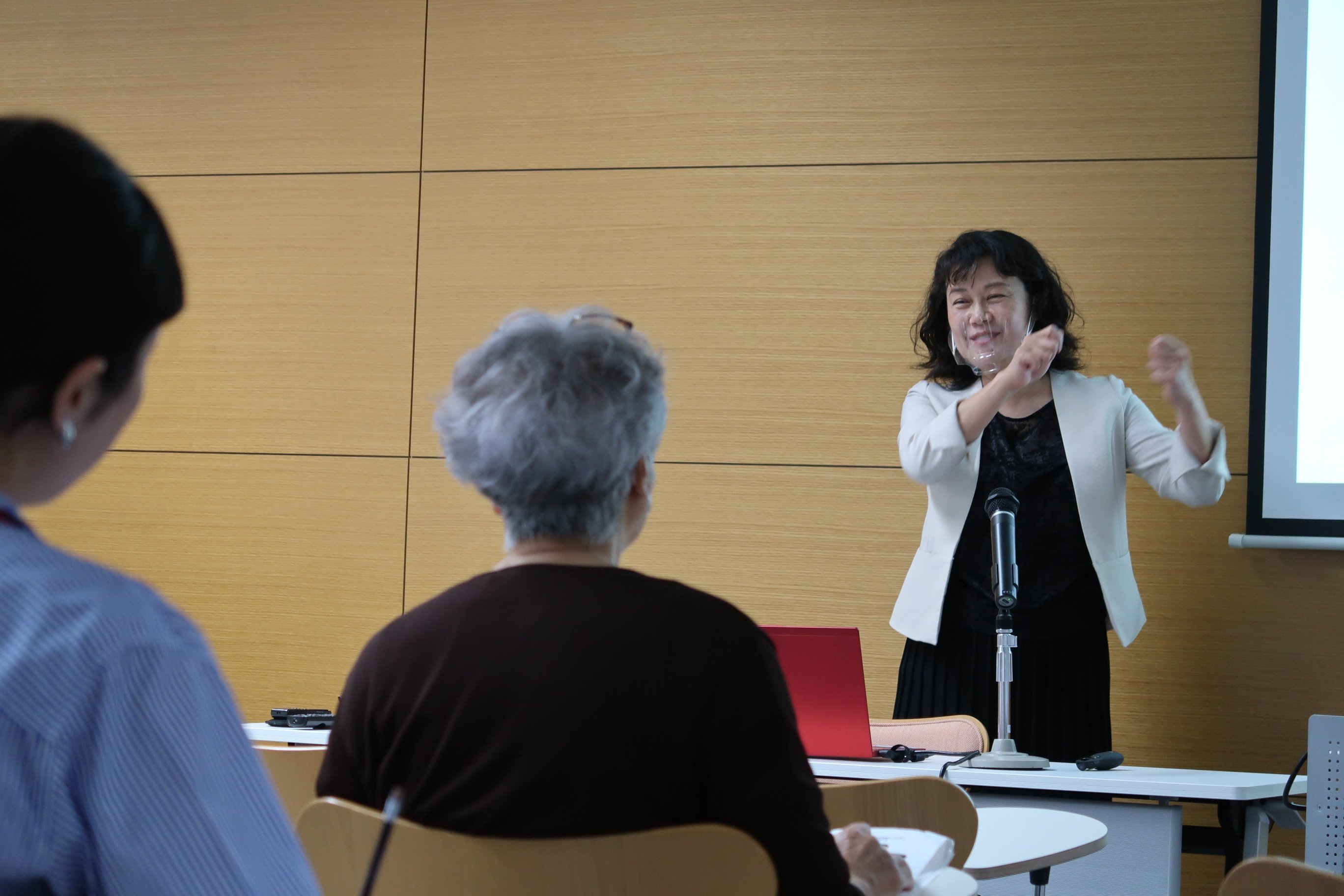 講師を務めてくださったのは、手話通訳士の和田みささん。「聞こえない人とともに楽しむ鑑賞」と題し、レクチャーをしていただきました。