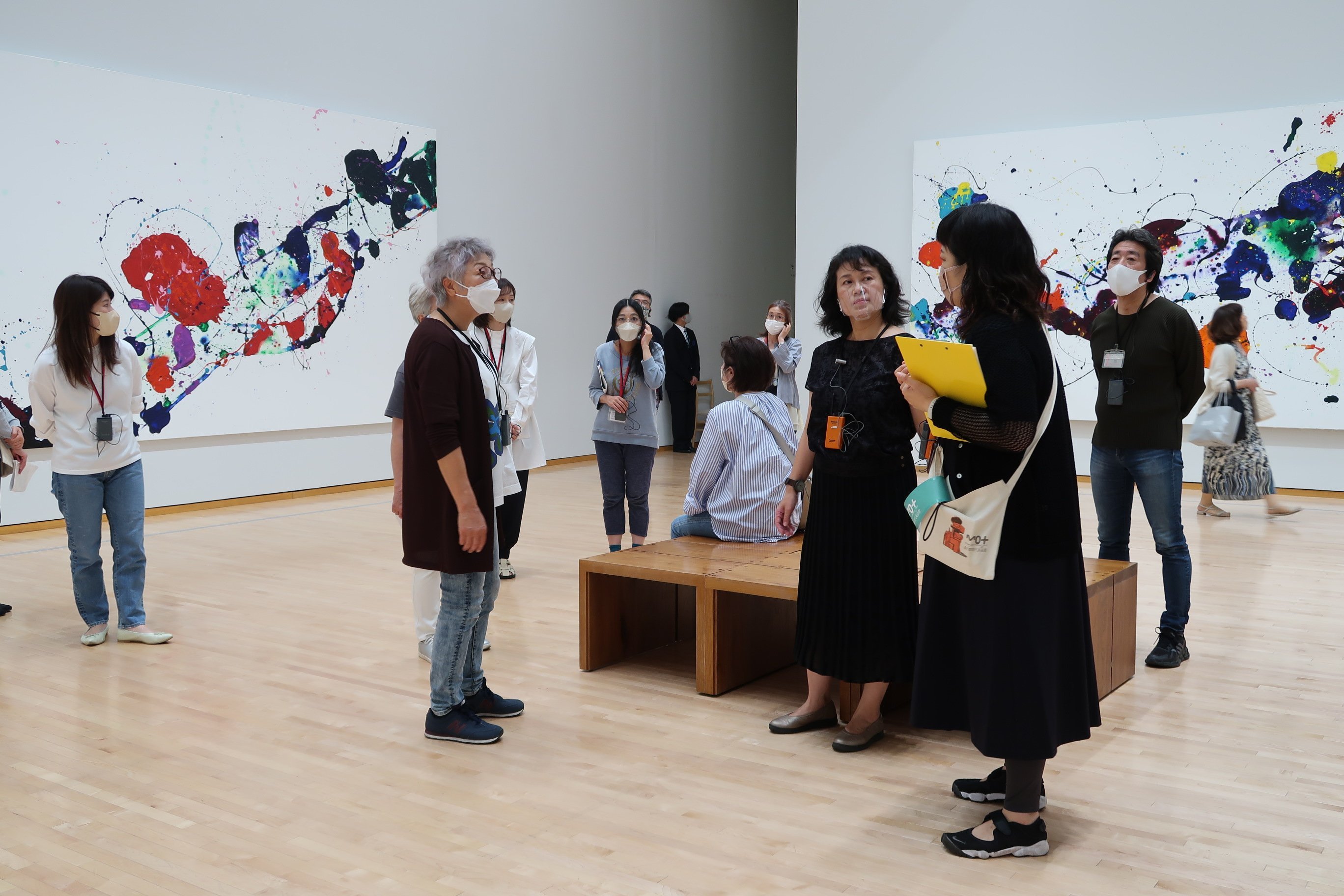研修室でお話を伺った後は、実際にギャラリートークを行うコレクション展示室に移動して、実際のトークを想定した立ち位置などを確認していきました。