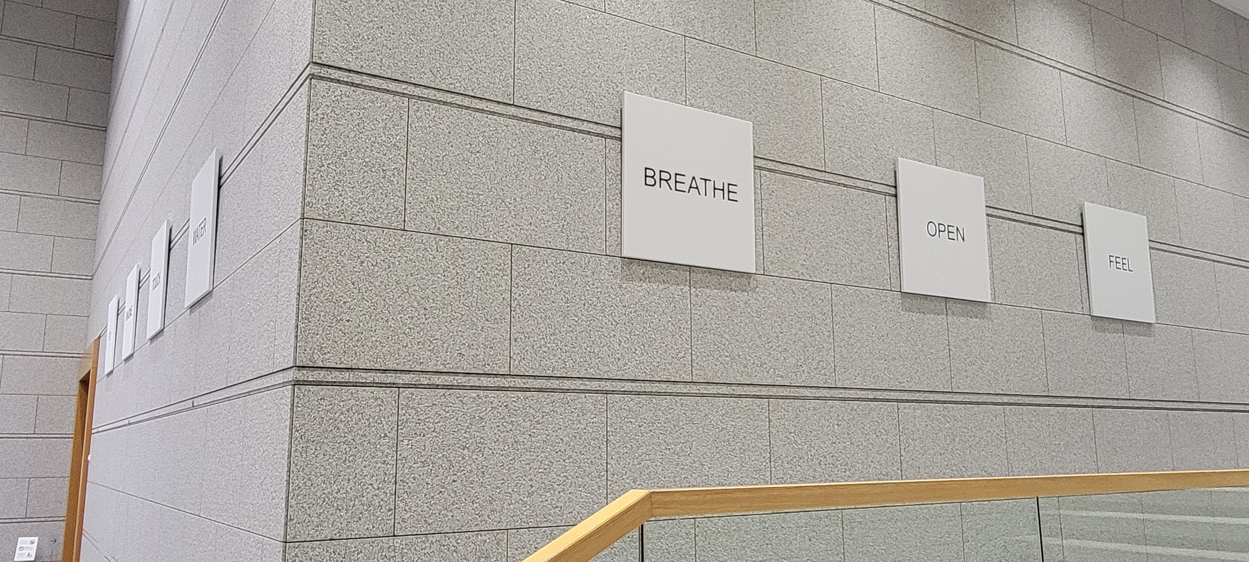 同じ空間にあるオノ・ヨーコ《インストラクション・ペインティング》を見つつ、階段で3階に上がります。11個並んだワードを一つずつ読み、どれが今の自分にピッタリくるか考えてもらいました。