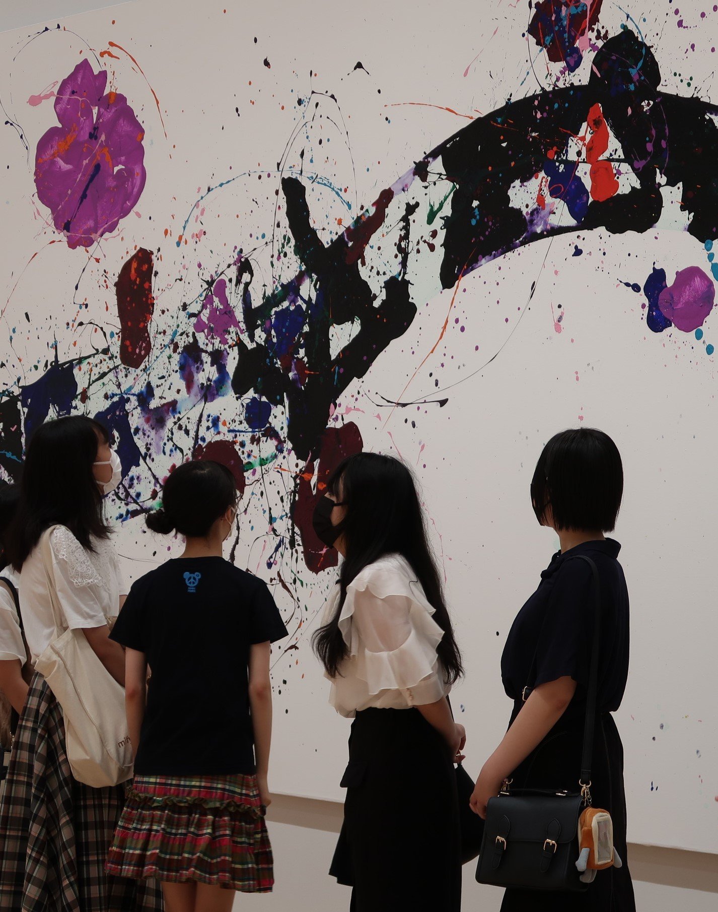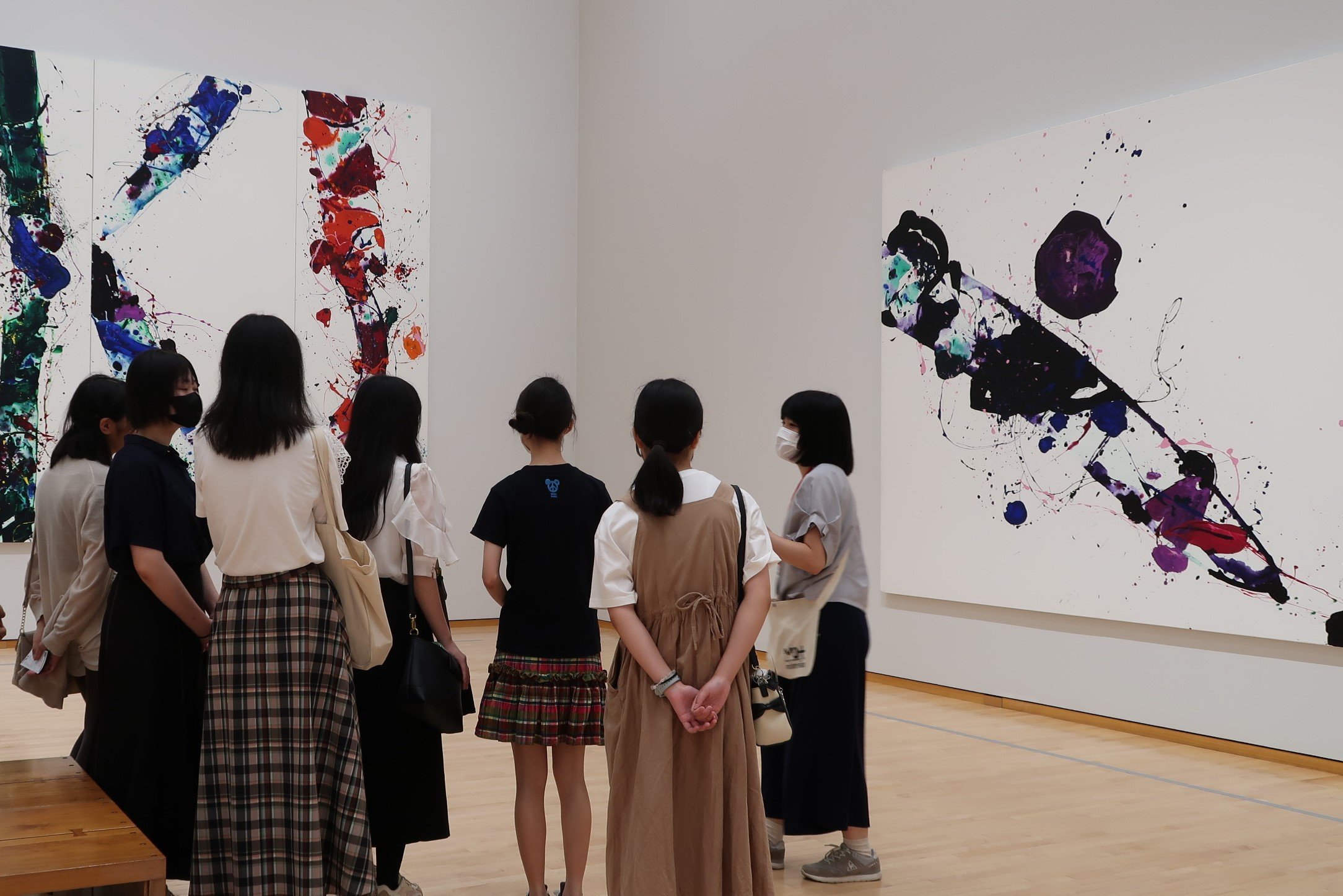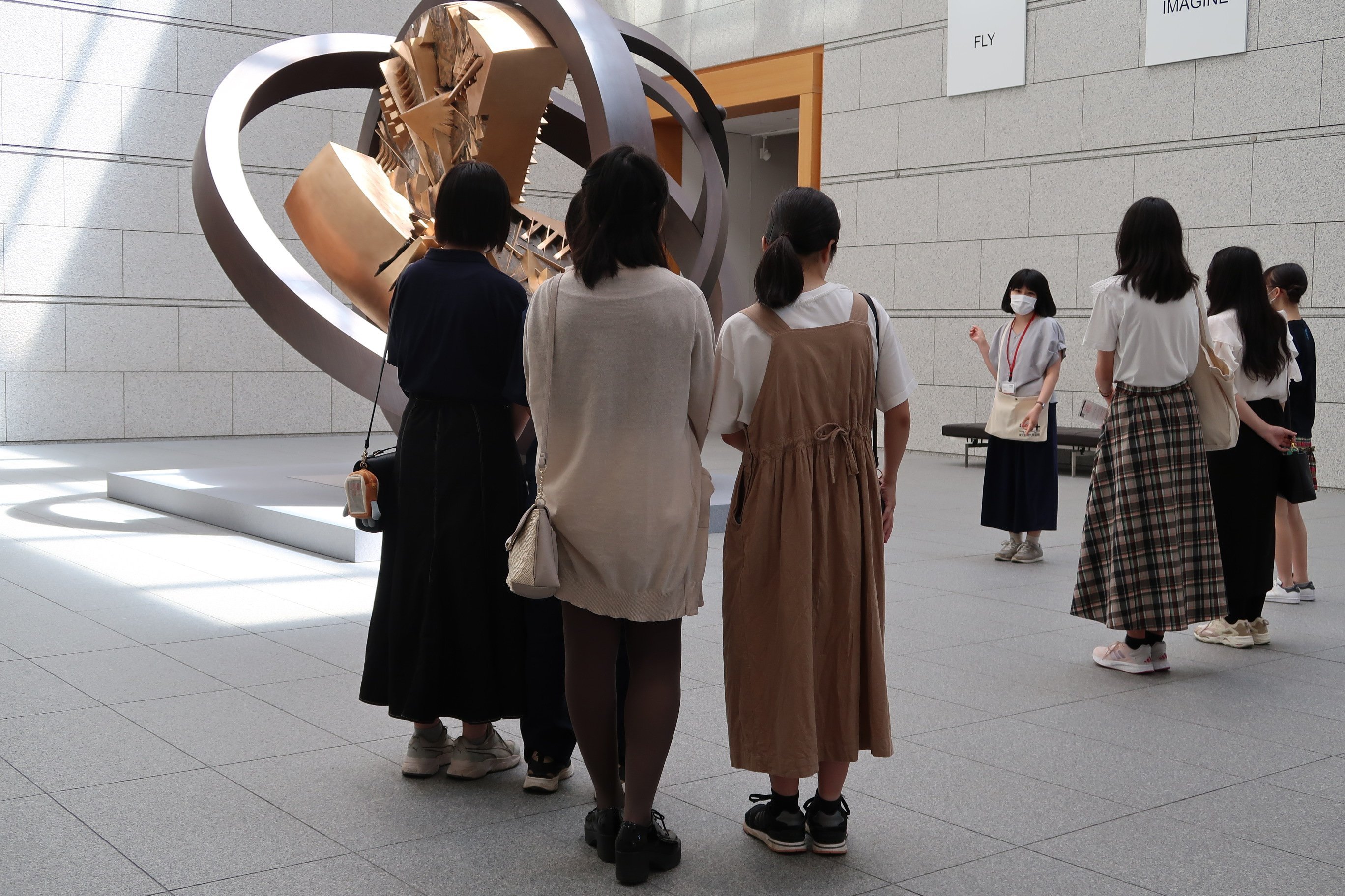 夏の日差しが降り注ぐ7月25日、東久留米市立南中学校美術部の3年生にご来館いただきました。ふだん美術部では、共同制作をはじめ精力的に活動しているそうです。夏休みの始まりに美術館で過ごす体験は、皆さんにとってどのようなものとなるでしょうか。