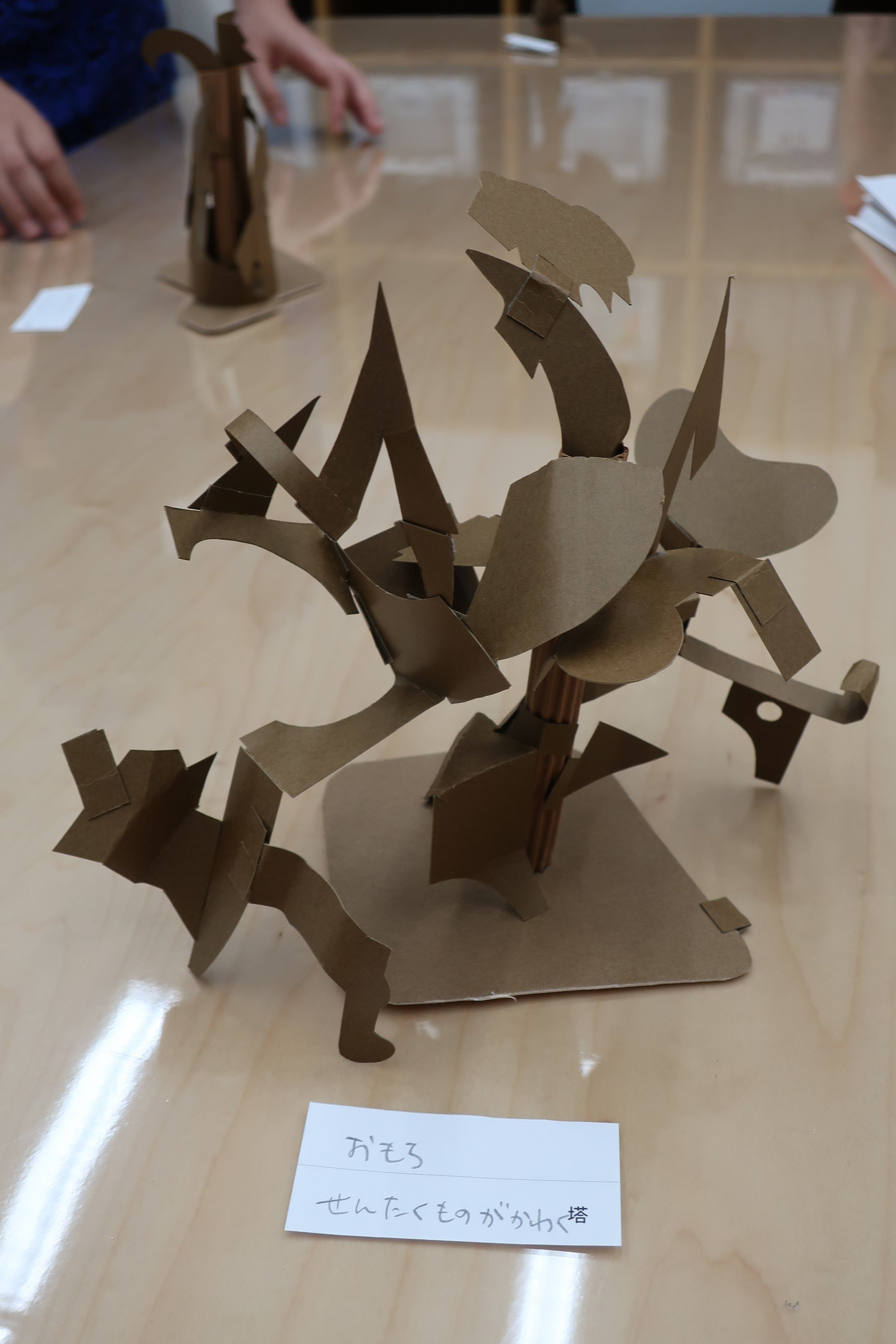 約40分の制作時間を経て、作品が完成! 一人ずつどんな塔をイメージして作ったか発表していただきました。