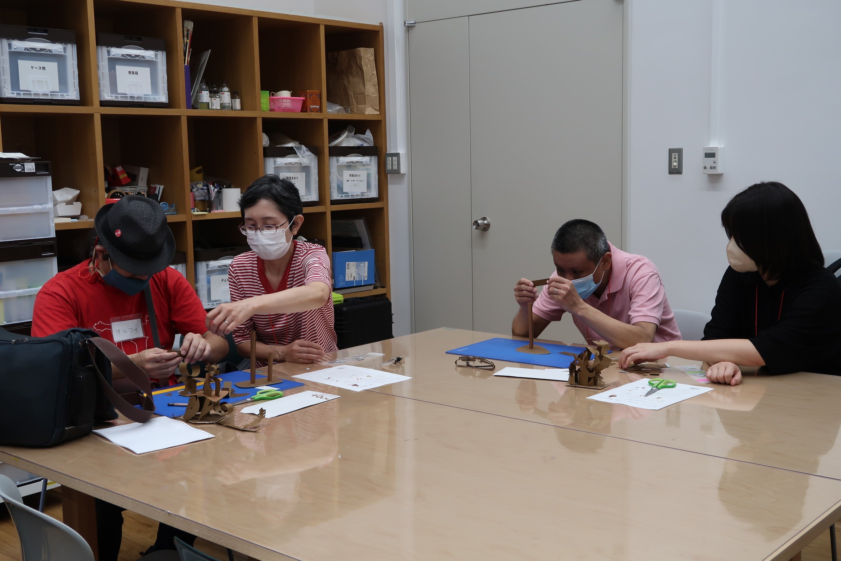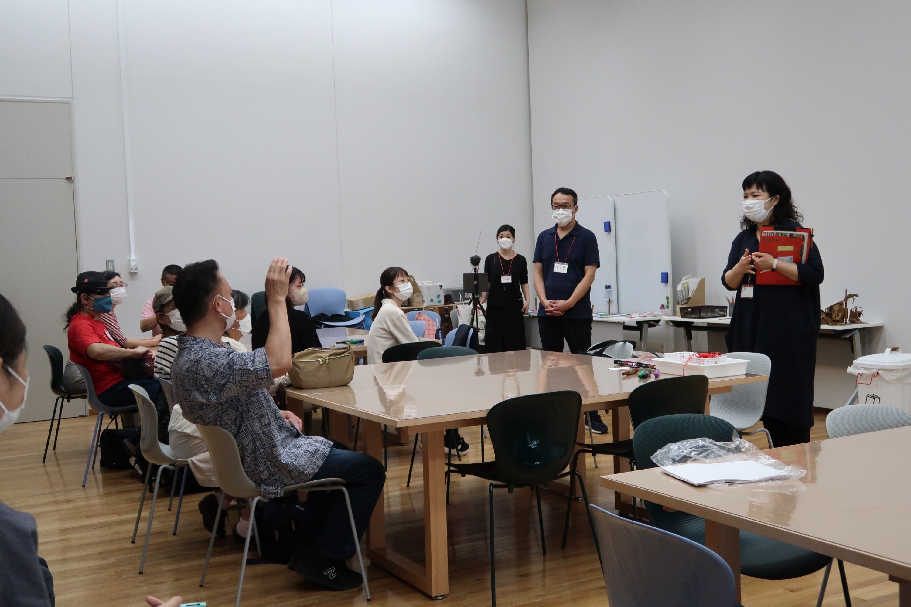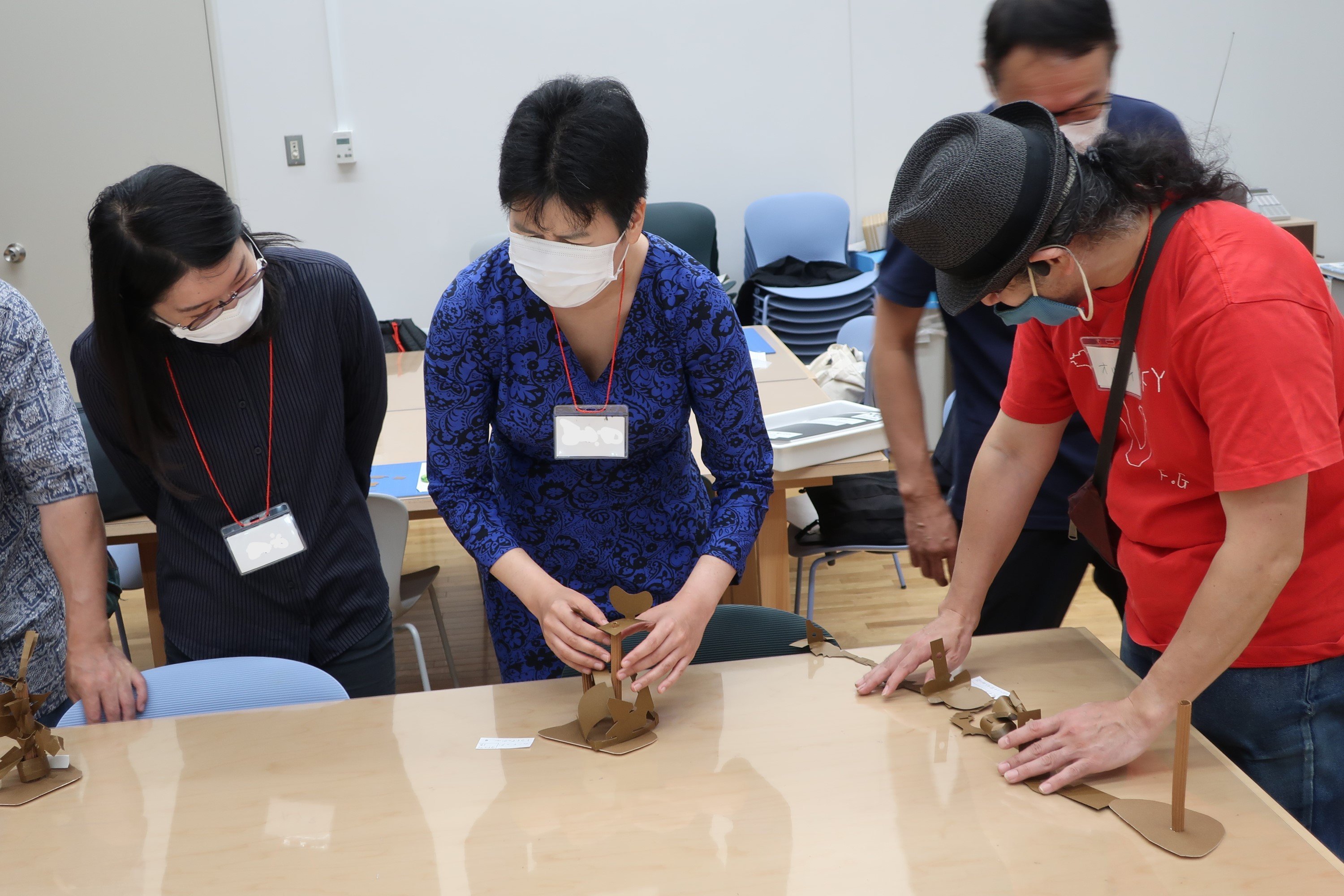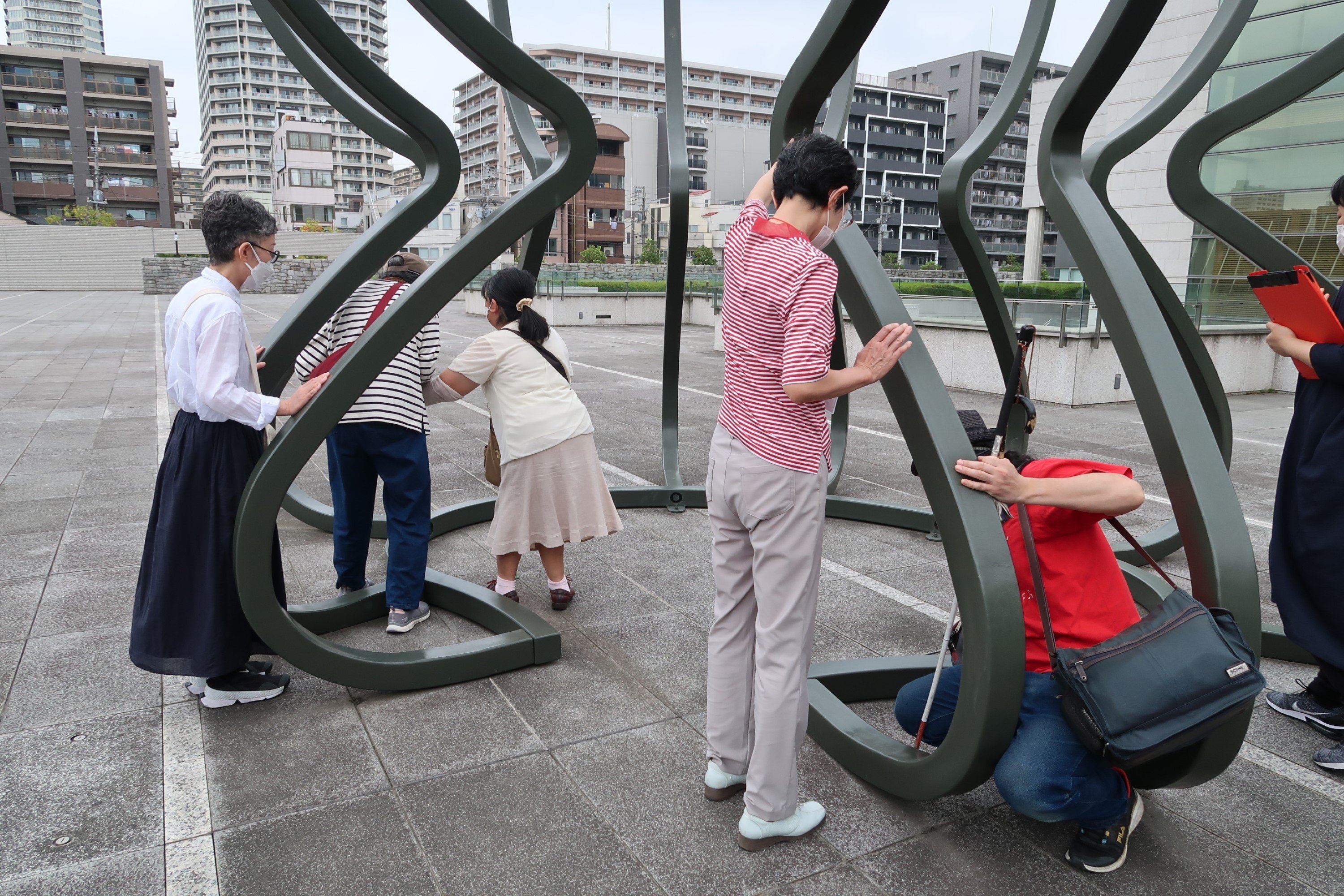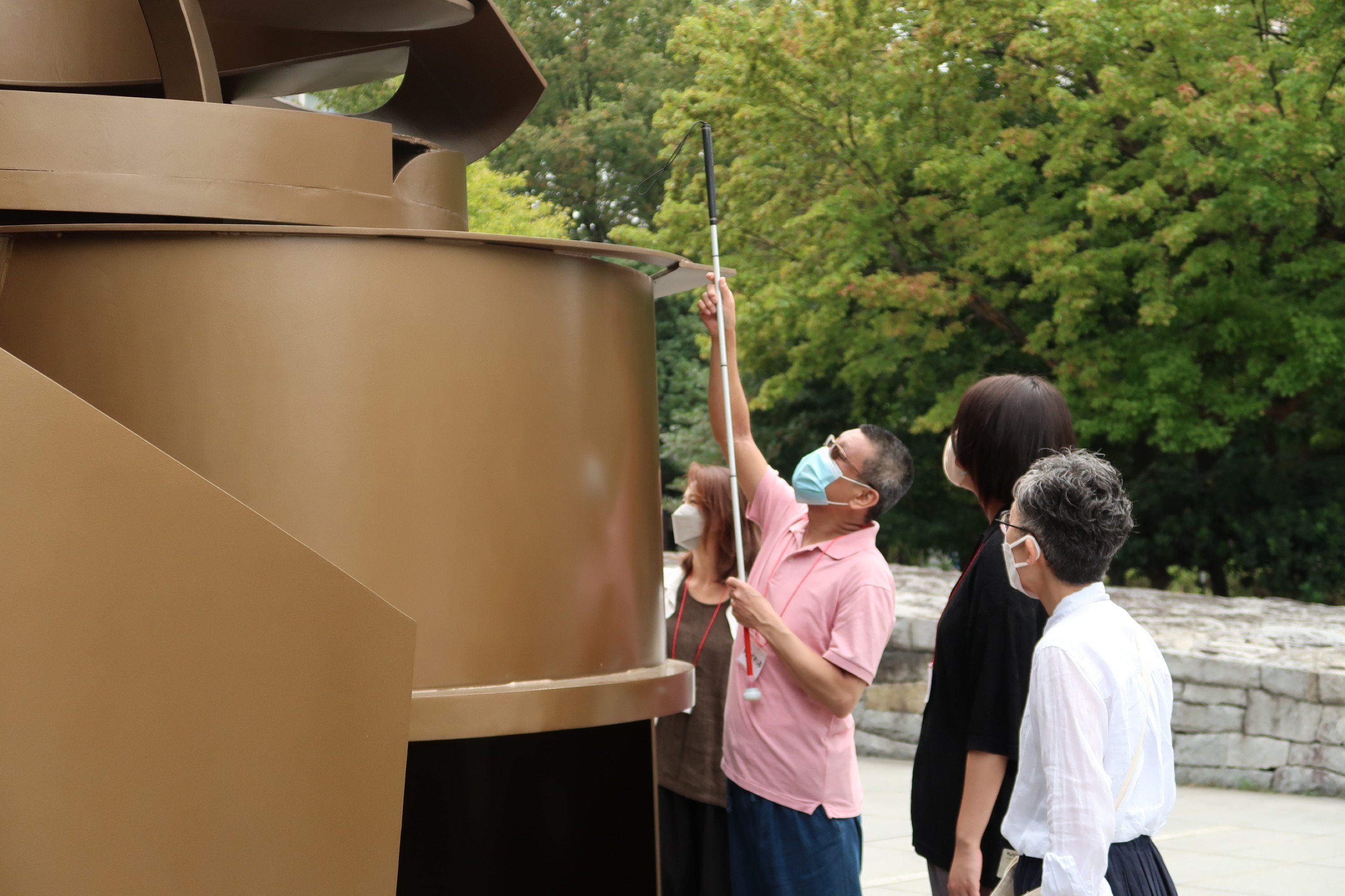 今回のプログラムでは、視覚障害のある方とない方とが、作品を触ってわかること、見て気づくことを伝え合いながら鑑賞を深めていきました。自分なりの発見や他人の見方、作品にまつわる情報などを通して、作品のイメージは広がっていきます。そのような作品鑑賞を経て、さらに塔を作るという創作活動も体験いただいた今回のプログラム。見たり、触ったり、話したり、作ったりと様々な感覚を使う一日となりました。(A.T)