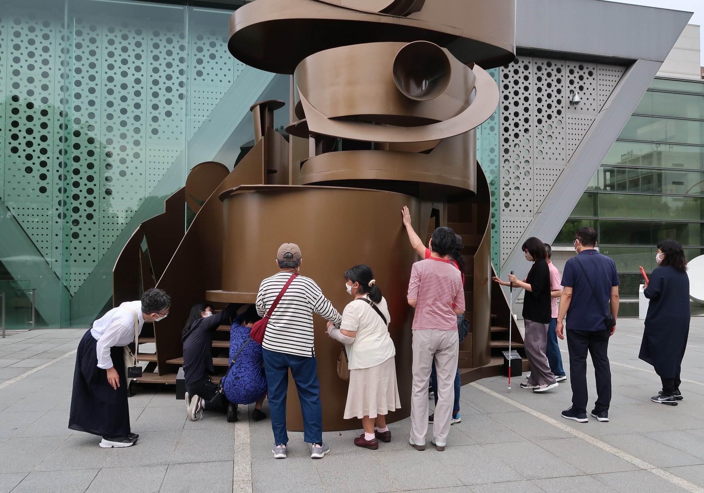 続いて、公園口にそびえ立つアンソニー・カロの《発見の塔》へと移動。